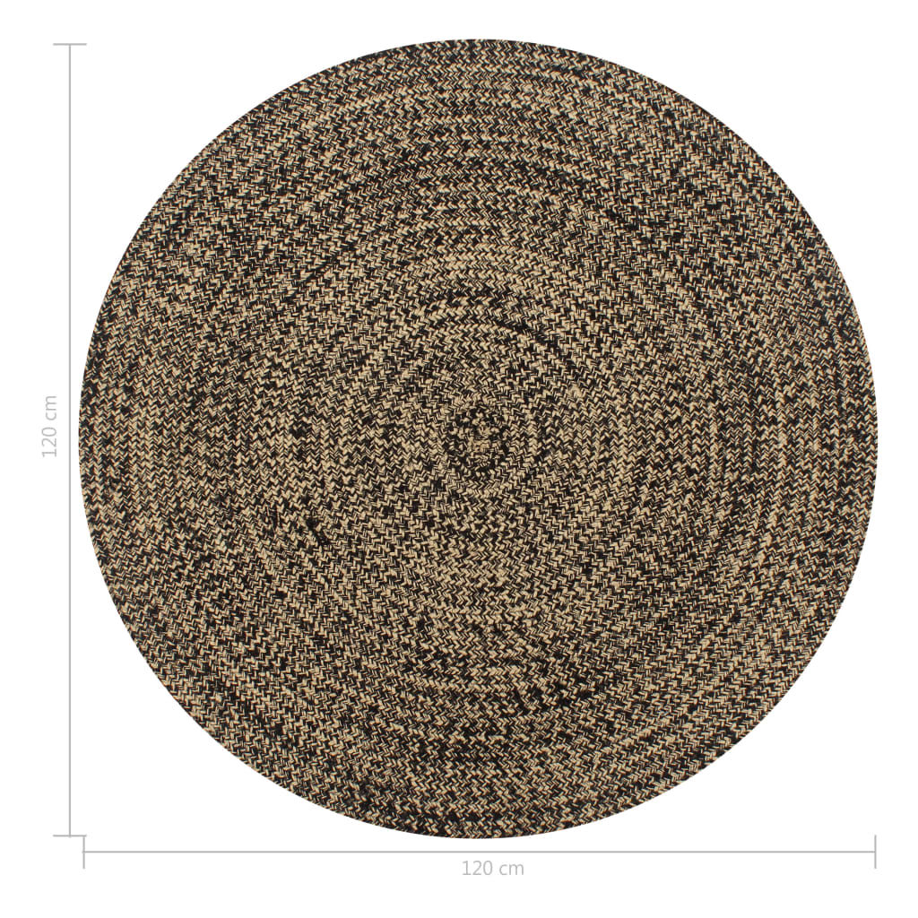 Teppich Handgefertigt Jute Schwarz und Natur 120 cm