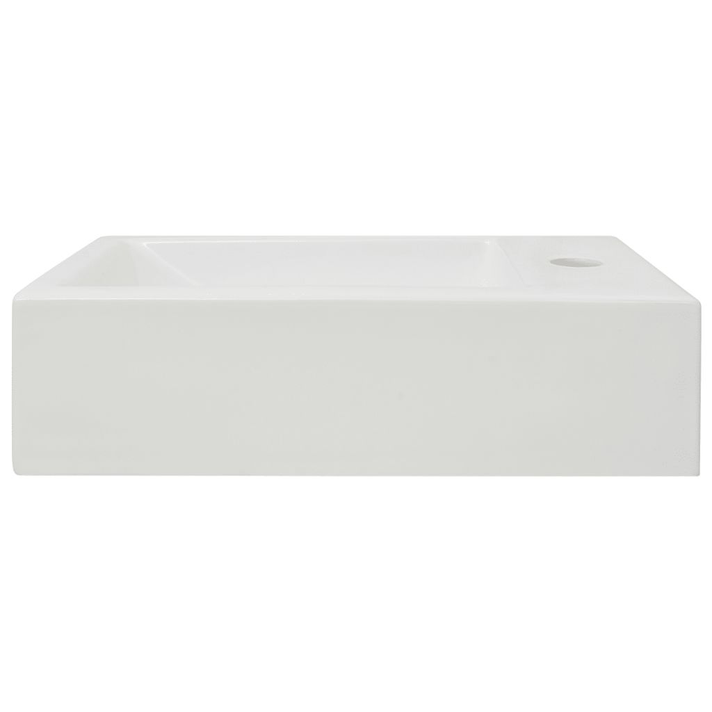 Dieses rechteckige Waschbecken aus hochwertiger Keramik ist ein stilvolles Zubehör für jedes Badezimmer. Seine glasierte, glänzende Oberfläche überzeugt mit einem modernen, eleganten Design. Dieses kunstvolle Keramikwaschbecken ist mehr als nur ein praktischer Begleiter bei der täglichen Badezimmer-Routine! Es ist auch eine Zierde für Ihre Zuhause. Mit seiner eleganten, zeitlosen Gestaltung fügt es sich harmonisch in jeden Einrichtungsstil ein. Darüber hinaus ist es einfach zu installieren. Das Hahnloch hat einen Durchmesser von 3,7 - 3,8 cm und eignet sich für die Montage eines Wasserhahns direkt auf dem Waschbecken. Die Abflussöffnung hat einen Durchmesser von 4,5 cm. Bitte beachten Sie, dass der Wasserhahn und die Ablaufgarnitur nicht im Lieferumfang enthalten sind.