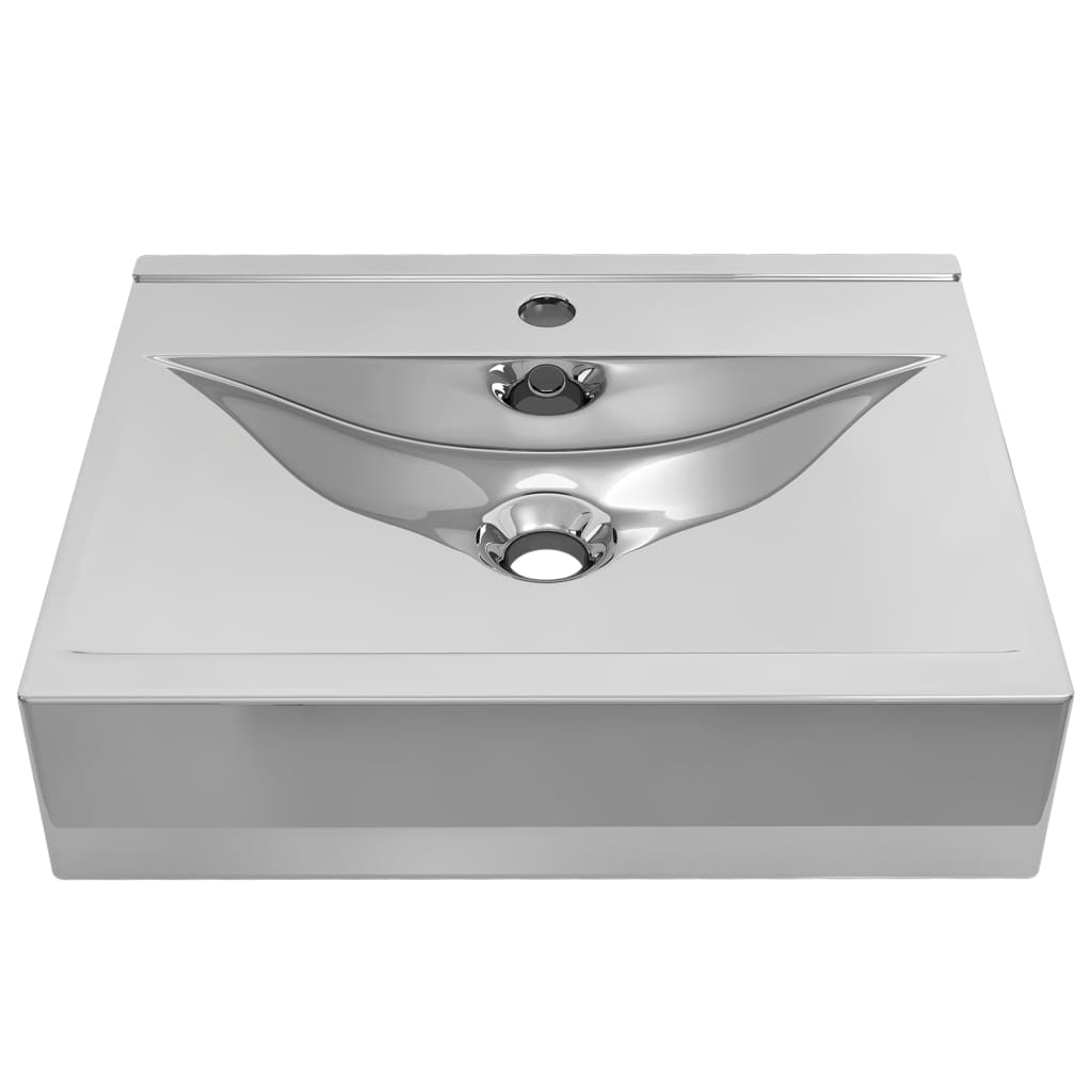 Dieses aus Keramik gefertigte rechteckige Waschbecken stellt eine schicke und zeitlose Bereicherung für jedes Badezimmer, jeden Waschraum bzw. Schminkraum dar. Dieses Waschbecken dient nicht nur als Becken zum täglichen Gebrauch, sondern stellt auch eine Dekoration in Ihrem Wohnraum dar. Durch sein trendsetzendes und modernes Design passt dieses Waschbecken ganz bestimmt zu jeder Inneneinrichtung. Aus Keramik gefertigt, lässt sich das Becken auch ganz einfach reinigen. Darüber hinaus verleiht das Hochglanz-Finish dem Waschbecken eine charmante Note. Ausgestattet mit Überlaufschutz, wird Wasser abfließen, wenn das Becken überfüllt wird. Das Becken ist auch mit einem Wasserhahnloch zur Montage eines Hahns versehen. Bitte beachten Sie, dass der Wasserhahn und die Armatur nicht im Lieferumfang enthalten sind.