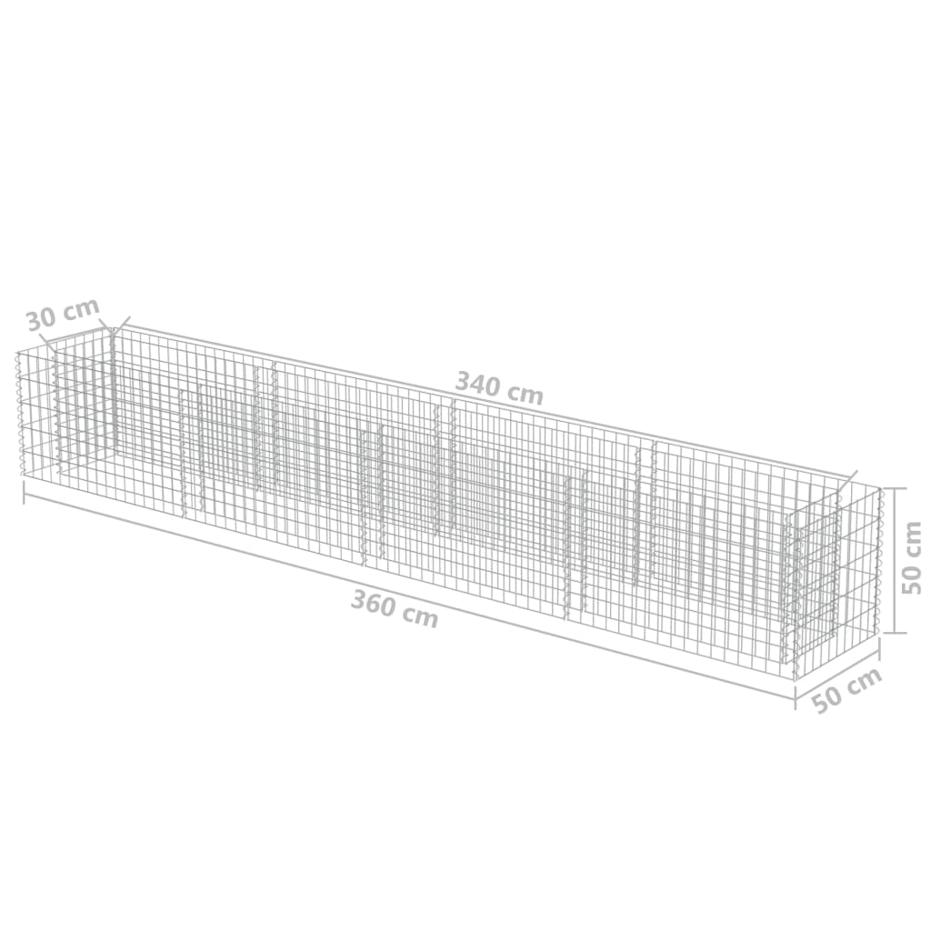 Mit diesem Gabionen-Hochbeet können Sie ein stabiles, aber dennoch stilvolles Blumen- oder Hochbeet anlegen, z.B. als Begrenzung in Ihrem Garten oder Hof. Der robuste Drahtkorb ist so konzipiert, dass er mit Steinen oder Kies gefüllt werden kann. Das Hochbeet wird aus rostfreiem und witterungsbeständigem, verzinktem Stahl hergestellt und ist daher sehr stabil und langlebig. Das Maschengitter wird durch Verschweißen der Quer- und Längsdrähte an jeder Verbindungsstelle noch mehr verstärkt und ist dadurch extra stabil. Bitte beachten Sie, dass die Steine und Pflanzen nicht im Lieferumfang enthalten sind.