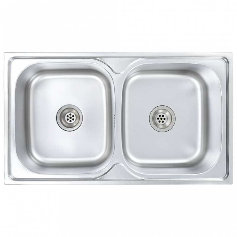 Dieses zeitgemäße, extratiefe Doppel-Spülbecken hat ein klares, elegantes Design und ist eine vielseitige Ergänzung für Ihre Küche. Dieses Spülbecken aus hochwertigem Edelstahl ist kratz- und schlagfest und äußerst langlebig. Es ist außerdem schmutzabweisend und fleckenbeständig und daher leicht zu reinigen. Dieses Spülbecken spart Platz und sorgt für mehr Ablagefläche. Die extra tiefen Becken bieten ausreichend Platz für große Pfannen und Geschirr, und die Doppelfunktion schafft einen völlig separaten Bereich, den Sie nutzen können. Die Lieferung umfasst auch das Sieb und den Siphon. Diese Spüle ist einfach zu montieren.