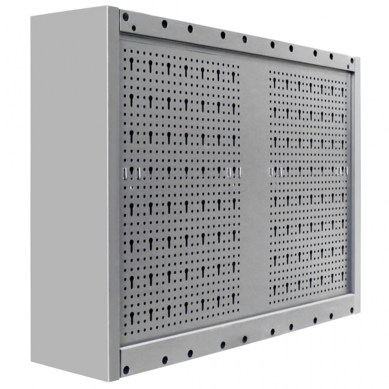 Dieser wandmontierbare Werkzeugschrank eignet sich ideal zur Aufbewahrung Ihrer Werkzeuge, kann aber mit seinem coolen, industriellen Design auch eine einzigartige dekorative Ergänzung zu Ihrem Zuhause darstellen. Dieser Werkzeugschrank verfügt über zwei höhenverstellbare Fachböden und eine Lochplatte mit Euro-Löchern, die verwendet werden können, um verschiedene Werkzeuge wie Schraubenschlüssel, Zangen, Hämmer, etc. aufzuhängen. Mit zwei abschließbaren Türen ausgestattet (inkl. 2 Schlüsseln pro Tür) bietet der Werkzeugschrank zusätzliche Sicherheit. Er besteht aus Metall mit einer extra-starken, kratzfesten Beschichtung, wodurch er langlebig und leicht zu reinigen ist. Dieses Produkt muss montiert werden.