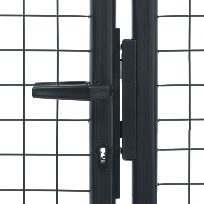 Dank seiner hohen Stabilität und Langlebigkeit kann dieses Gartentor als praktischer, moderner Eingang zu Ihrem Garten, Hof oder Terrasse eingesetzt werden. Dieses Gartentor weist eine makellose Verarbeitung auf und ist aus verzinktem Stahl mit pulverbeschichteter Oberfläche gefertigt, der rostbeständig ist und eine stabile Konstruktion bildet. Das Tor verfügt zudem über zwei Seitenpfosten mit Scharnieren, die eine einfache Montage ermöglichen und wird samt Erdspieß für den großen, unteren Riegel geliefert, der dafür sorgt, dass das Tor sicher verschlossen werden kann. Die Lieferung umfasst auch drei Schlüssel.