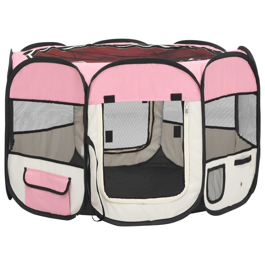 Faltbarer Welpenlaufstall mit Tragetasche Rosa 90x90x58 cm