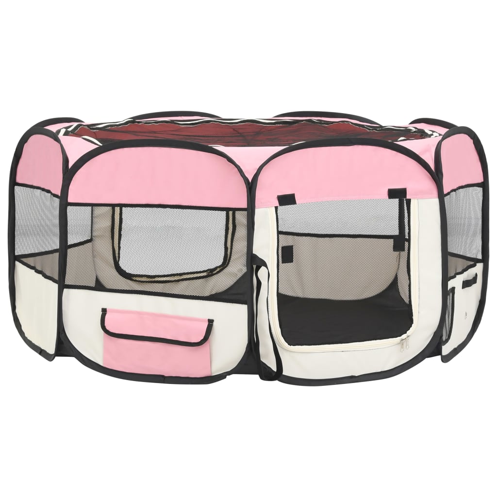 Faltbarer Welpenlaufstall mit Tragetasche Rosa 145x145x61 cm