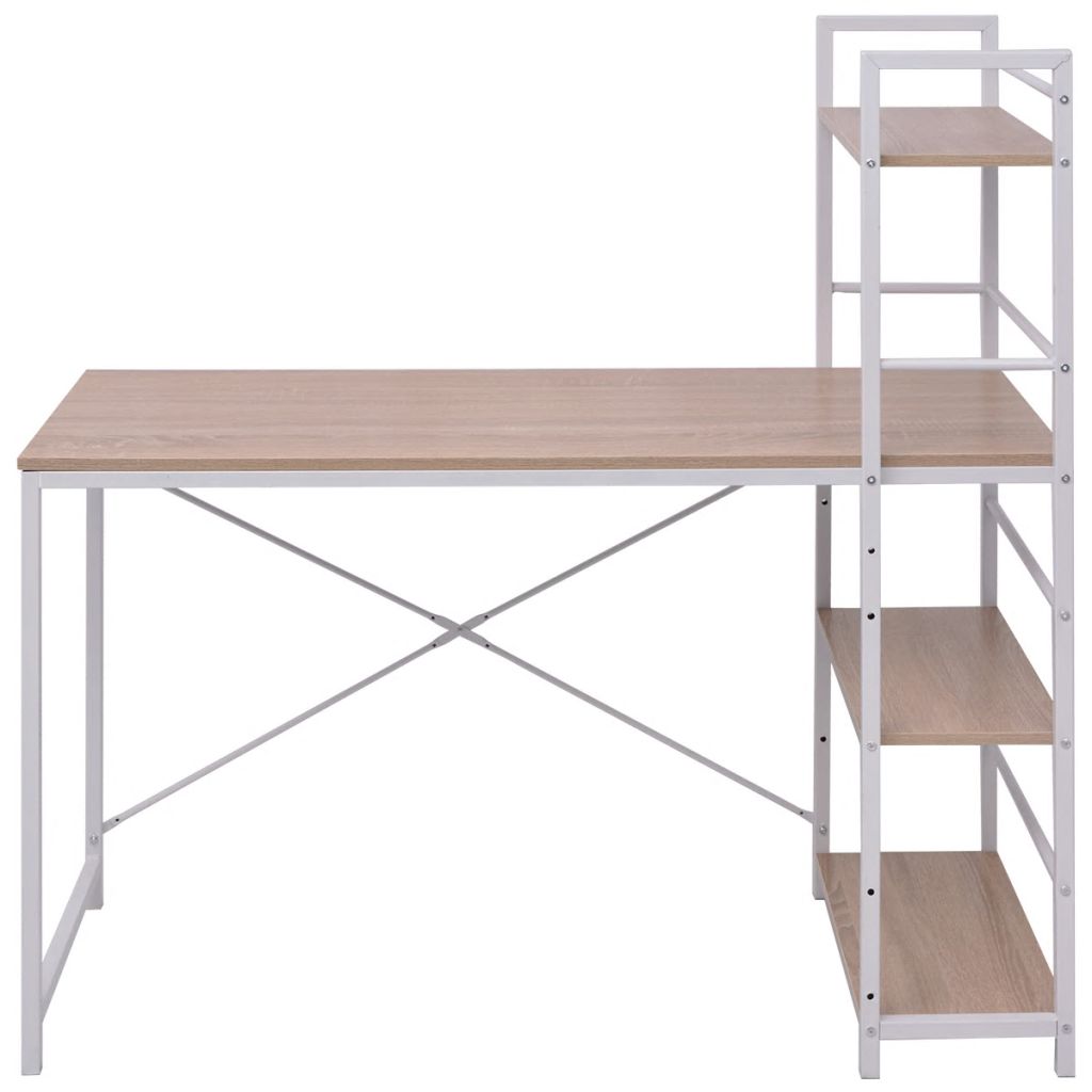 Dieses einfache, aber stilvolle Ordnungssystem verfügt über einen Schreibtisch und ein Bücherregal mit 4 Böden und wird so zu einem sehr praktischen, komfortablen und vielseitigen Möbelstück für den Einsatz zu Hause oder im Büro. Dieser einzigartige und elegante Schreibtisch hat geräumige und stabile Fachböden. Der große Schreibtisch eignet sich ideal für die Unterbringung Ihres Computers und Zubehörs und ist ein idealer Arbeitsplatz. Die integrierten Regale bieten zusätzlichen Stauraum und Ausstellungsplatz für Ihre Bücher, Ordner, Dokumente oder Fotorahmen, dekorative Objekte und Topfpflanzen, usw. Dieses platzsparende Büromöbelstück ist aus hochwertigen Materialien gefertigt, wobei seine Metallkonstruktion es sehr robust, stabil und langlebig macht.