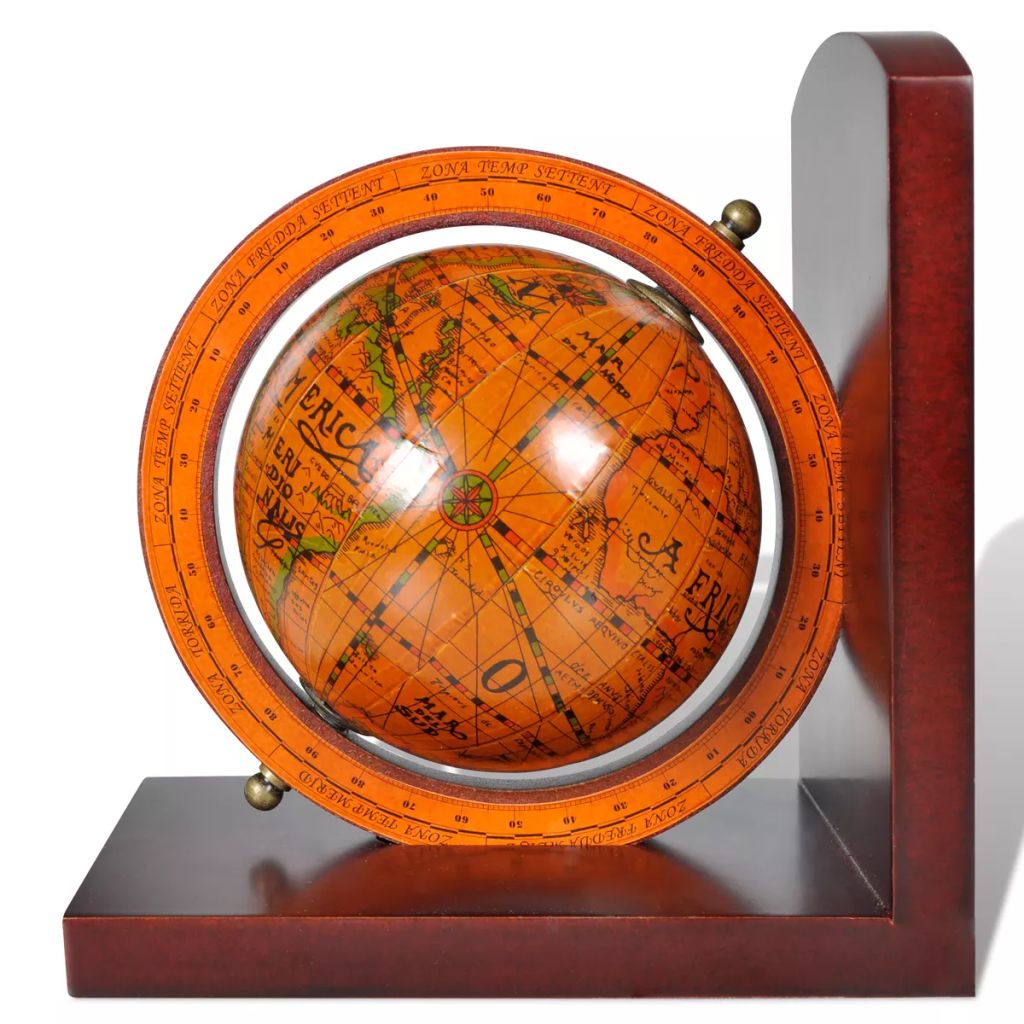 Dieses Paar Buchstützen in Globus-Design wird dazu verwendet, Ihre Bücher und Dokumente in einer aufrechten Position und in bester Ordnung zu halten. Diese Buchstützen sind aber auch ein gutes Schreibtischzubehör für zu Hause und fürs Büro.