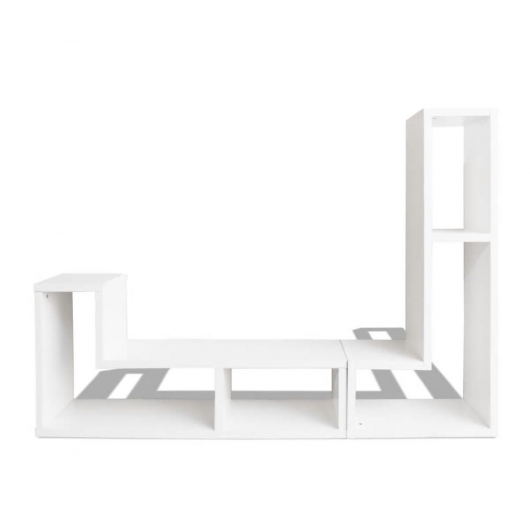 Dieser TV-Schrank mit einem zeitgenössischen, multifunktionalen Design wird eine große Ergänzung zu jedem Haus machen. Die robuste Konstruktion macht diesen TV-Schrank sehr langlebig. Der Fernsehschrank besteht aus 2 L-förmigen Regalen, die in verschiedenen Konfigurationen platziert werden können. Die großen Regale mit viel Platz ermöglichen es Ihnen, Ihren DVD-Player, Spielkonsole, Streaming-Gerät, Medienträger, dekorative Gegenstände, usw. ordentlich organisiert zu halten. Seien Sie kreativ und wählen Sie die beste Konfiguration für dieses stilvolle und funktionale Schrank!