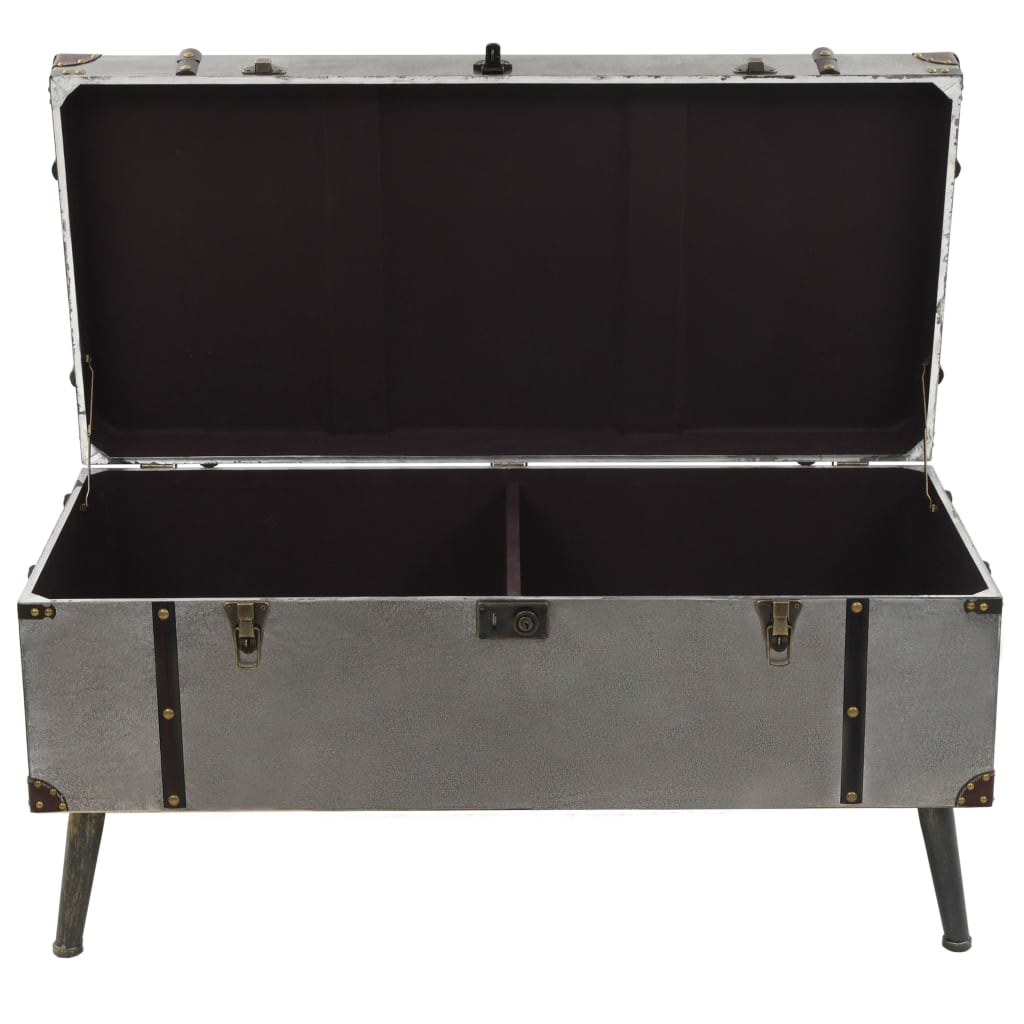 Mit seinem spektakulären Vintage-Design ist dieser einzigartige Couchtisch in Form eines Reisekoffers eine stilvolle Bereicherung für dein Interieur. Er lässt sich auch als Beistelltisch oder Ablagetisch verwenden. Dieser haltbare und formschöne Tisch besteht aus MDF mit Aluminiumbeschichtung, ist mit einer Auskleidung aus Vliesstoff versehen und verfügt über robuste Stahlbeine, die zu seinem rustikalen Charme beitragen. Die Tischplatte bietet den idealen Platz für Getränke, Vasen, Topfpflanzen, Obstkörbe oder andere Dekoartikel. Die Truhe verfügt über zwei Innenfächer, die reichlich Platz für Decken, Bücher, Zeitschriften, Fernbedienungen und andere Sachen bieten, die du außer Sicht, aber dennoch griffbereit halten möchtest. Dank der weichen und komfortablen Griffe lässt sich der Truhentisch bei Bedarf mühelos umstellen. Die Montage dieses Artikels ist einfach.