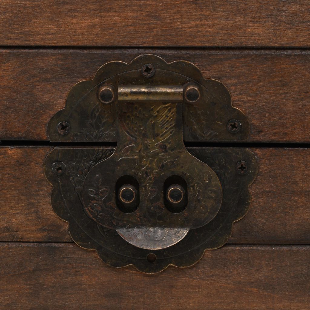 Die Holztruhe im Vintage-Stil ist eine praktische und dekorative Ergänzung für dein Zuhause! Diese Truhe ist aus Massivholz gefertigt und mit Riemen aus Kunstleder und Elementen aus Metall verziert, was der Schatztruhe ihren Vintage-Charme verleiht. Die Holztruhe bietet reichlich Stauraum für Kleidung, Bücher, Zeitschriften und alles andere, was man gerne in Reichweite, aber außer Sichtweite aufbewahren möchte. Dank des Riegels und der Griffe im Vintage-Look lässt sich die Aufbewahrungstruhe leicht verschließen und transportieren. Der Artikel ist bereits montiert; eine Montage ist nicht erforderlich.