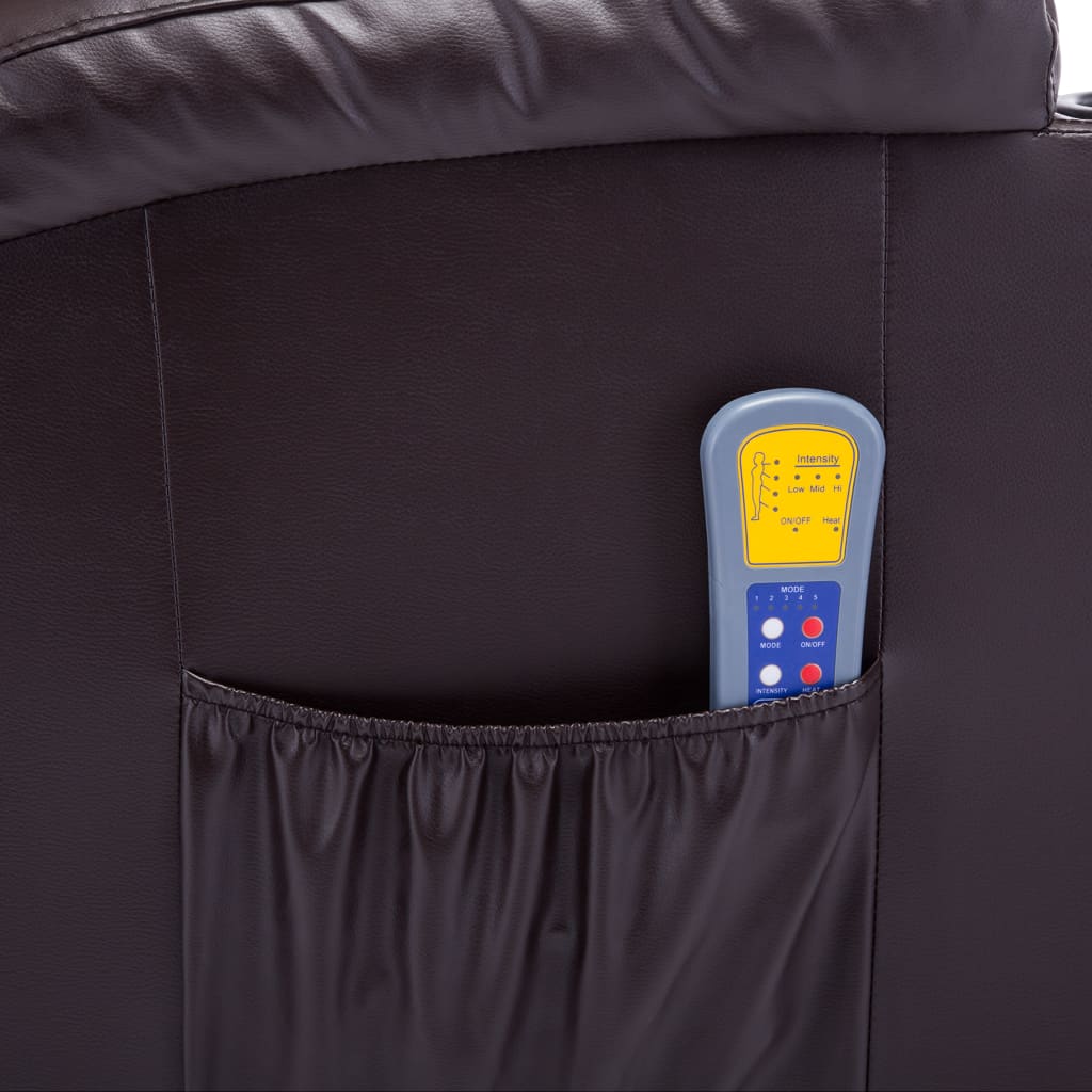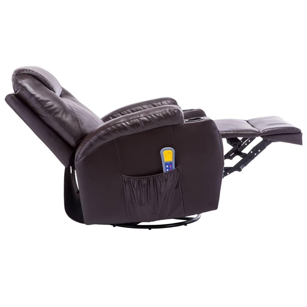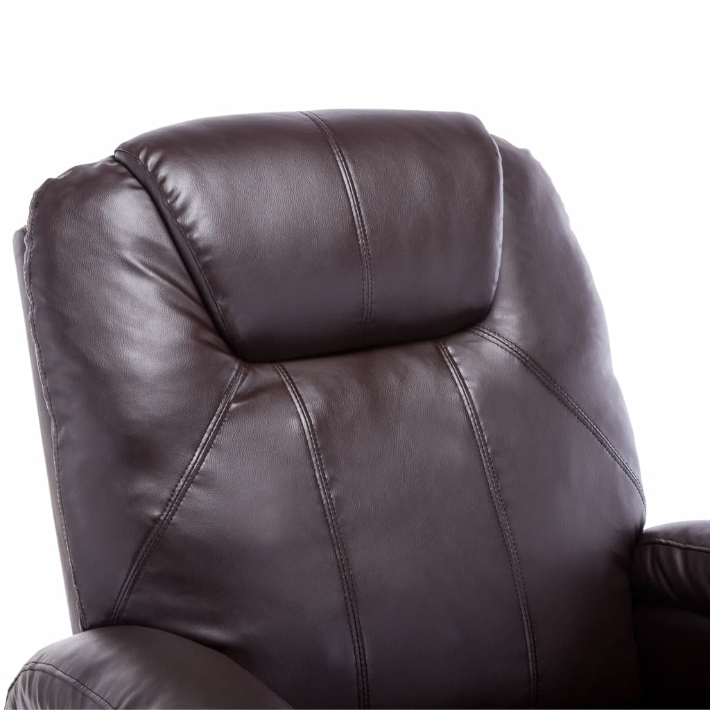 Unser qualitativ hochwertiger elektrischer Massage-Schaukelsessel ist die perfekte Wahl zum vollständigen Entspannen nach einem harten Arbeitstag. Mit erstklassigem Kunstleder bezogen und mit einer dick gepolsterten Sitzfläche und Rückenlehne versehen, bietet dieser Sessel höchsten Komfort. Der TV-Sessel ist auch drehbar und ermöglicht dadurch einen 360°-Sicht auf das Zimmer. Der Massagesessel verfügt über 8 Massagepunkte, um den ganzen Körper zu entspannen. Dank der Heizfunktion strahlt der Sessel angenehme Wärme aus, die zum Lösen von Verspannungen beiträgt. Rückenlehne und Fußstütze lassen sich je nach Bedarf in verschiedenen Winkeln verstellen. Die mitgelieferte Fernbedienung kann in der Seitentasche des Massagesessels verstaut werden. Der elektrische Massagesessel ist einfach zu montieren. Hinweis: Das Produkt verfügt über einen USB-Anschluss, aber die zertifizierte 5-V-USB-Stromquelle ist nicht im Lieferumfang enthalten.