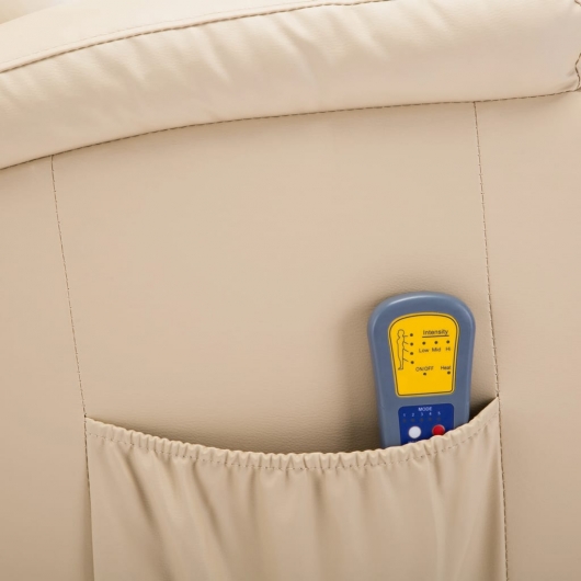 Unser qualitativ hochwertiger elektrischer Massage-Schaukelsessel ist die perfekte Wahl zum vollständigen Entspannen nach einem harten Arbeitstag. Mit erstklassigem Kunstleder bezogen und mit einer dick gepolsterten Sitzfläche und Rückenlehne versehen, bietet Ihnen dieser Sessel höchsten Komfort. Der TV-Sessel ist mit einem Drehsystem ausgestattet, das einen 360°-Sicht auf das Zimmer ermöglicht. Der drehbare Massagestuhl verfügt über 8 Massagepunkte, um den ganzen Körper zu entspannen. Dank der Heizfunktion strahlt der Liegesessel eine angenehme Wärme aus, die beim Lösen von Verspannungen hilft. Die Rückenlehne und die Fußstütze lassen sich je nach Bedarf in verschiedenen Winkeln verstellen. Die mitgelieferte Fernbedienung kann in der Seitentasche des Massagesessels verstaut werden. Der elektrische Massagesessel ist einfach zu montieren. Hinweis: Das Produkt verfügt über einen USB-Anschluss, aber die zertifizierte 5-V-USB-Stromquelle ist nicht im Lieferumfang enthalten.