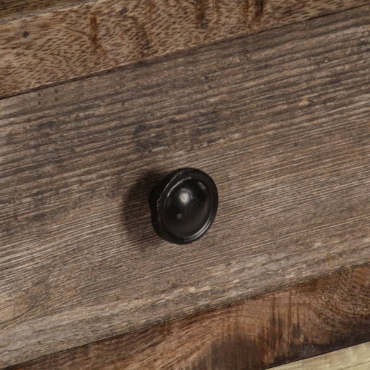 Das TV-Lowboard aus Holz versprüht einen rustikalen Charme und ist eine tolle Bereicherung für dein Interieur. Der HiFi-Schrank ist aus massivem Mangoholz gefertigt, welches durch Polieren, Anstreichen und Wachsen einen raffinierten Look erhalten hat. Dieses Lowboard ist vollständig handgefertigt, wobei die schöne Holzmaserung jedes Möbelstück zu einem Unikat macht. Dieses Sideboard verfügt über 2 Fächer, 2 Schubladen sowie einen Schrank und bietet ausreichend Platz für Ihre Multimedia-Geräte, Bücher und verschiedene andere Gegenstände. Das Produkt ist leicht zu montieren. Wichtiger Hinweis: Die Farben variieren von Stück zu Stück und machen jedes Möbelstück einzigartig. Die Lieferung erfolgt nach dem Zufallsprinzip, wodurch die Exklusivität und Individualität deines Produkts gewährleistet wird.