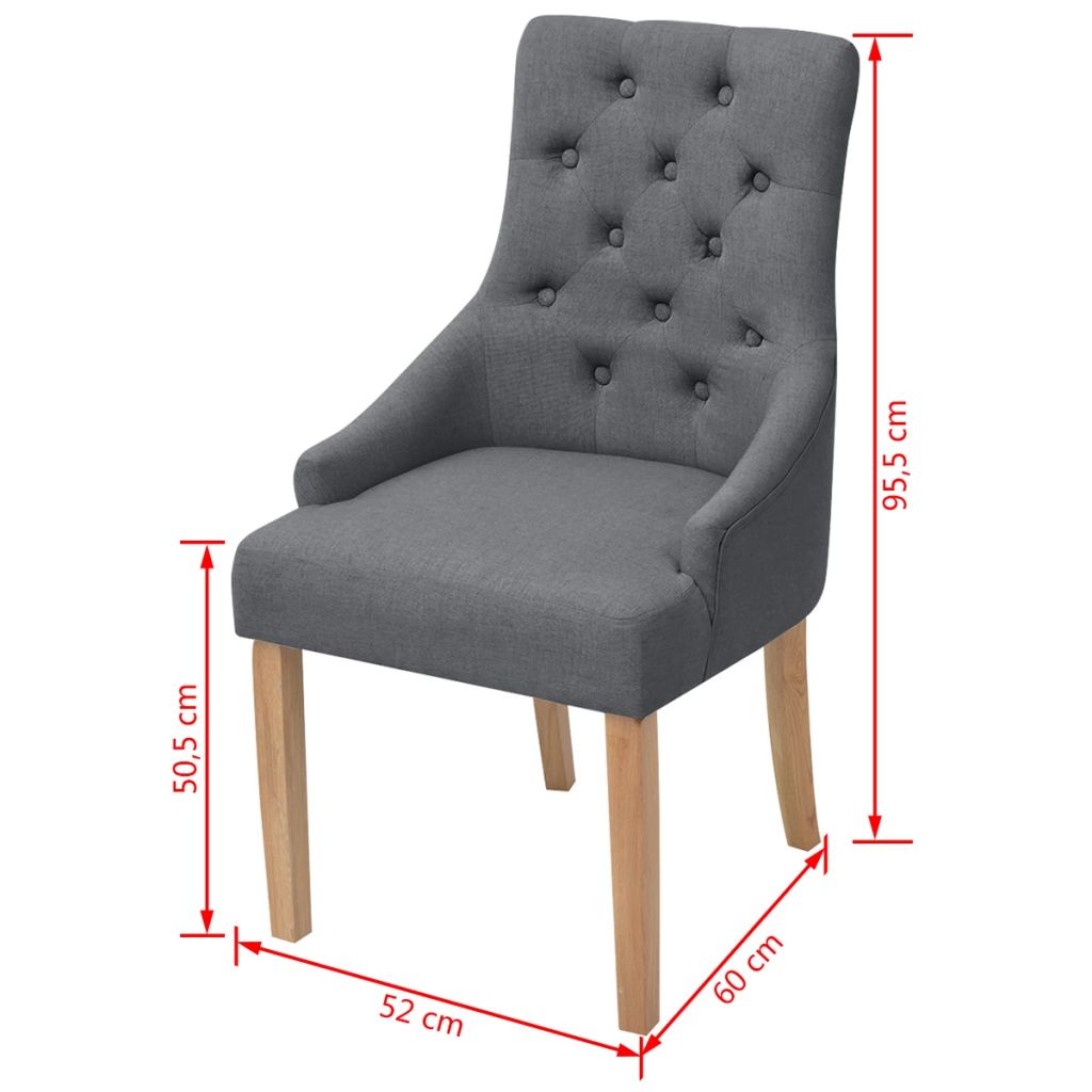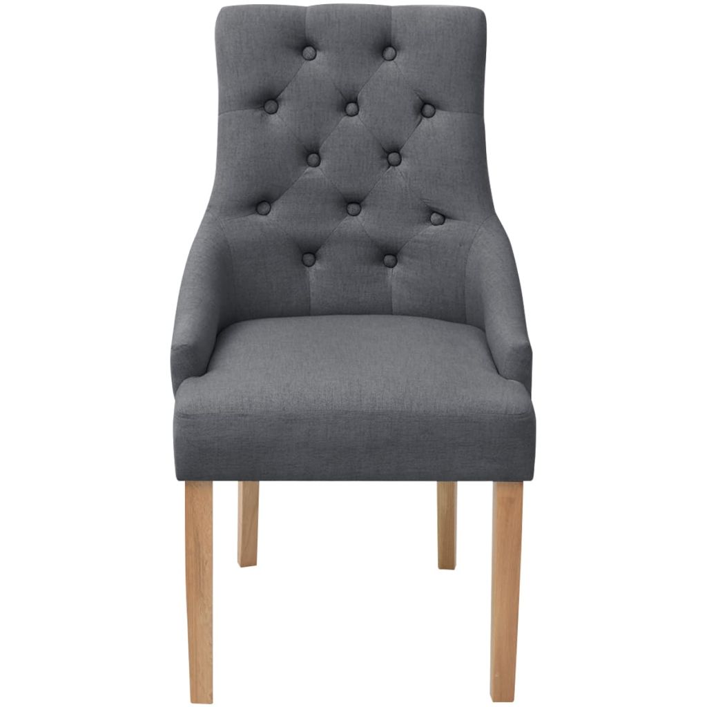 Diese hochwertigen Esszimmerstühle mit Armlehnen haben ein luxuriöses und anmutiges Design und werden Ihrer Inneneinrichtung einen Hauch von Stil und Eleganz verleihen. Die Stühle sind ideal für Mahlzeiten oder beim Lesen und Entspannen im Wohnzimmer. Dank der Eichenholzbeine sind die Stühle langlebig, robust und stabil. Die dick gepolsterten Sitze und Rückenlehnen tragen zu ihrem Sitzkomfort bei. Die Lieferung beinhaltet 6 Esszimmerstühle.