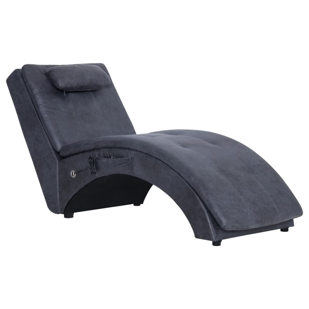 Massage Chaiselongue mit Kissen Grau Wildleder-Optik