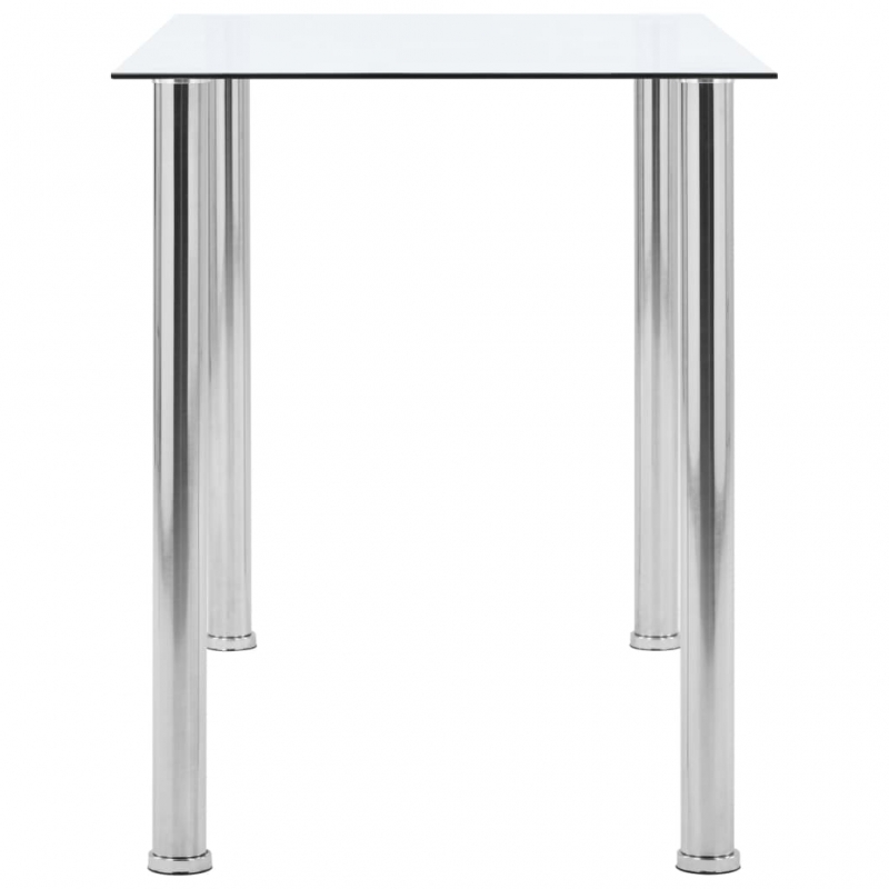 Dieser mit klaren und modernen Linien gestaltete Esstisch ist eine großartige Wahl für Ihre Küche, Ihr Esszimmer oder Ihren Essbereich im Freien. Der Esstisch verfügt über eine glatte Tischplatte aus gehärtetem Glas, die sich leicht mit einem feuchten Tuch reinigen lässt. Der Edelstahlrahmen trägt zu seiner soliden Konstruktion bei und sorgt für hohe Stabilität und Haltbarkeit. Darüber hinaus ist der Tisch einfach zu montieren.