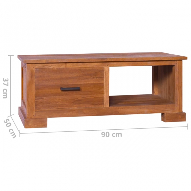 Mit unserem TV-Schrank aus massivem Teakholz bringen Sie einen Hauch von Kolonialstil in Ihren Wohnraum. Dieser TV-Schrank aus Teakholz ist abgelagert, technisch getrocknet und anschließend fein geschliffen worden, um ein sehr glattes Erscheinungsbild zu erhalten. Teakholz ist bekannt für seine außergewöhnliche Festigkeit und eignet sich daher weitaus besser für Möbel als jede andere Holzart. Teakholz ist die perfekte Wahl, wenn Sie sich ein langlebiges Möbelstück anschaffen möchten. Eine Schublade und ein offenes Regal bieten zusätzlichen Stauraum für Ihre verschiedenen wichtigen Dinge. Wichtiger Hinweis: Die schöne Farbe und die Holzmaserung können von Stück zu Stück variieren, was jeden Holzschrank einzigartig macht. Wir empfehlen, das Produkt mit Teaköl oder einer Lasur auf Wasserbasis zu behandeln, um seine Lebensdauer zu verlängern.