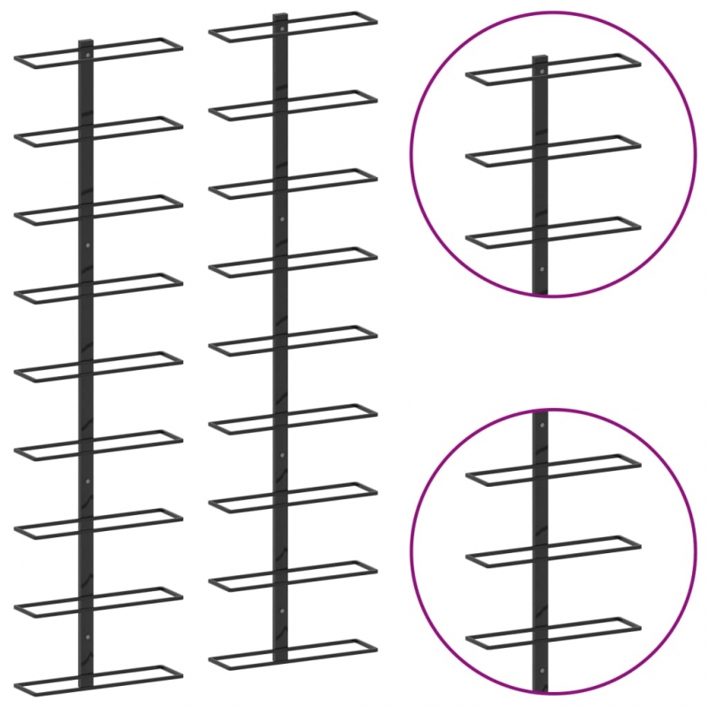Dieses Wand-Weinregal mit einfachem und dennoch stilvollem Design verleiht Ihrem Wohnraum einen Hauch moderner Eleganz. Im Lieferumfang sind 2 Weinregale enthalten, die bis zu 18 Flaschen Wein aufnehmen können. Sie bestehen aus pulverbeschichtetem Eisen, wodurch sie extrem langlebig und pflegeleicht sind, was sie zu einer idealen Wahl macht, um Ihren weinliebenden Freunden und Bekannten ein Geschenk zu machen. Darüber hinaus lassen sich diese Regale mit dem im Lieferumfang enthaltenen Montagezubehör einfach an der Wand befestigen und montieren. Bitte beachten Sie, dass die Weinflaschen nicht im Lieferumfang enthalten sind.