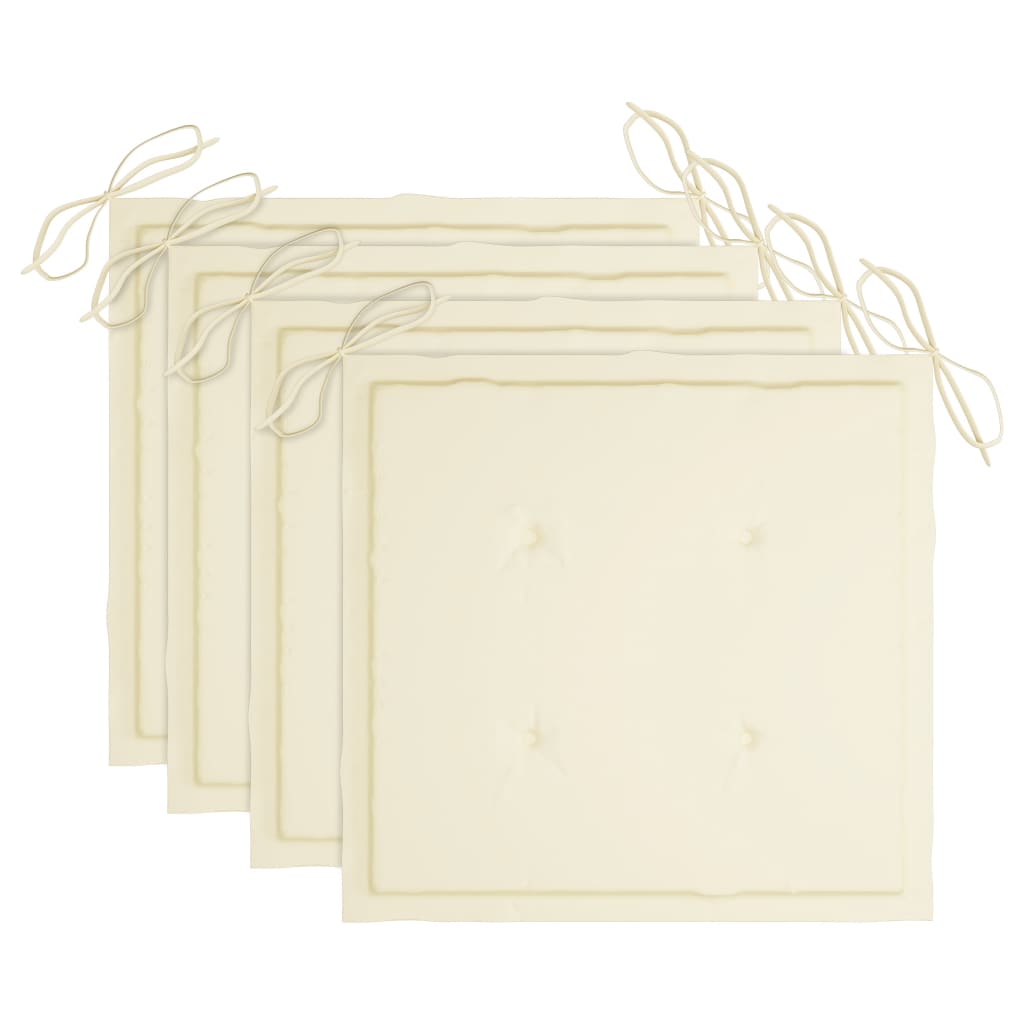 Gartenstühle mit Cremeweißen Kissen 4 Stk. Teak Massivholz
