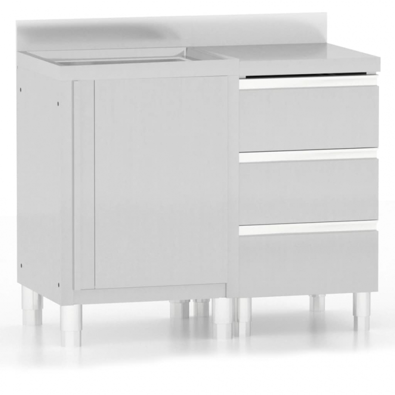 Wenn Sie zusätzlichen Stauraum für Küchenutensilien benötigen, ist der Gastro-Küchenschrank die perfekte Wahl für Sie. Er lässt sich in Restaurants, Hotels, in der Lebensmittelproduktion, in der Gastronomie oder in Garagen, am Arbeitsplatz und zu Hause einsetzen. Aus hochwertigem Edelstahl gefertigt, ist der Lagerschrank robust, korrosionsbeständig und leicht zu reinigen. Der Schrank bietet ausreichend Stauraum für Reinigungsgeräte und Zubehör. Darüber hinaus halten die verstellbaren Füße den Schrank selbst auf unebenen Böden gerade. Der Küchenschrank ist mit einer 10 cm hohen Aufkantung sowie Wasserloch versehen. In unserem Shop finden Sie auch den Gastro-Schrank mit Abtropfbrett und den Arbeitstisch. Sie können miteinander verbunden werden, um Ihren spezifischen Anforderungen gerecht zu werden. Montagezubehör ist im Lieferumfang enthalten.