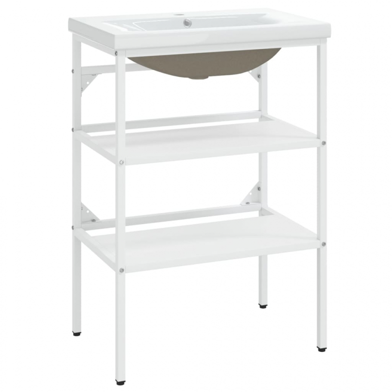 Badezimmer-Waschtischgestell mit Waschbecken Weiß Eisen