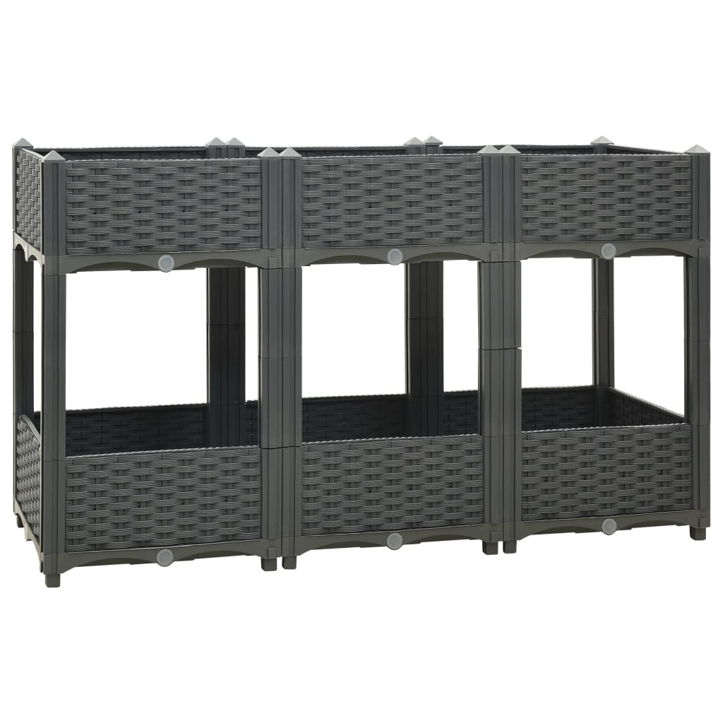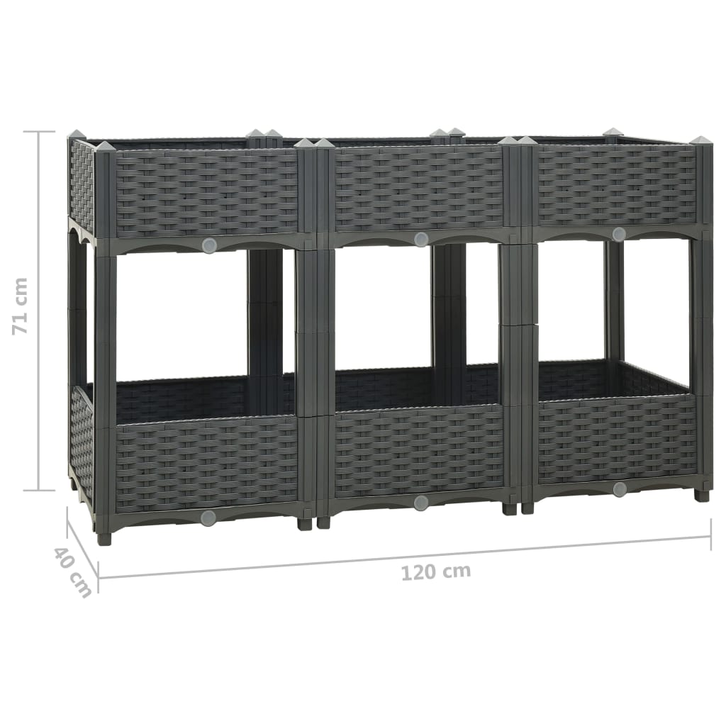 Dieses Hochbeet ist eine ausgezeichnete Wahl für Hobbygärtner, die ihren Garten, Balkon oder ihre Terrasse schön dekorieren möchten. Dieses Pflanzgefäß auf 2 Höhen ist aus Polypropylen gefertigt, wodurch es robust, strapazierfähig und für den täglichen Gebrauch im Freien geeignet ist. Das Hochbeet ist tief und breit genug, um eine große Menge an Erde aufzunehmen und bietet so ausreichend Platz für Ihre Pflanzen, Gemüse, Kräuter und Blumen. Schaffen Sie eine schöne Kulisse für Ihre Pflanzen mit diesem eleganten Pflanzbeet!