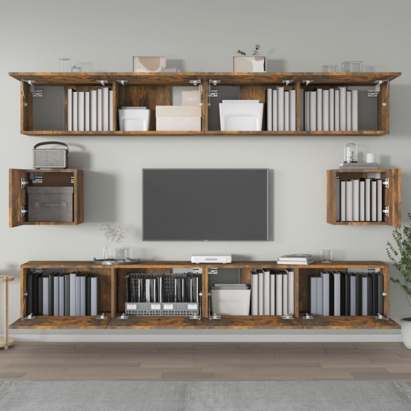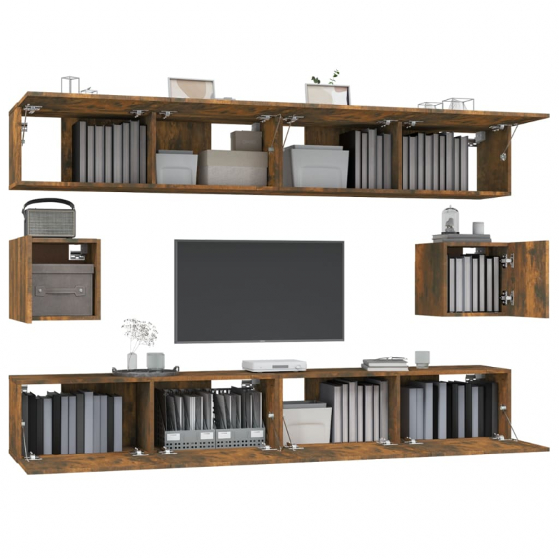 6-tlg. TV-Schrank-Set Räuchereiche Holzwerkstoff