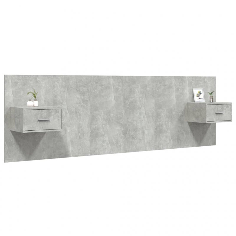 Kopfteil mit Nachttischen Betongrau Holzwerkstoff