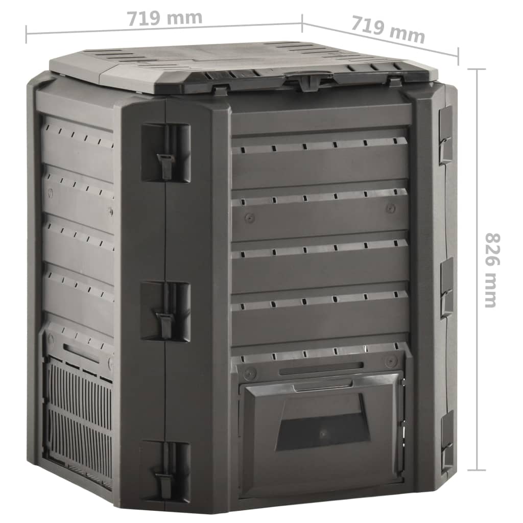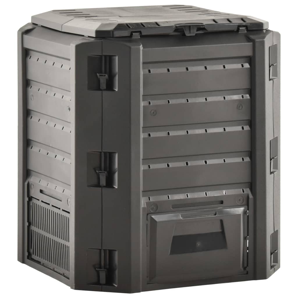 Mit diesem witterungsbeständigen Gartenkomposter kannst du die Zersetzung organischer Materie beschleunigen und Dünger selbst herstellen. Der Komposter ist sowohl für Garten- als auch für Küchenabfälle geeignet. Eine hohe Wärmeentwicklung innerhalb des Kompostbehälters fördert eine schnellere bakterielle Zersetzung und erzeugt einen besseren Humus. Mit seinem kompakten Design nimmt der Gartenkomposter wenig Platz ein, bietet aber ein großes Fassungsvermögen. Der Deckel erleichtert das Befüllen von oben, während die Klappe die einfache Entnahme des Humus ermöglicht. Dieser Komposter lässt sich ohne zusätzliche Werkzeuge zusammenbauen.