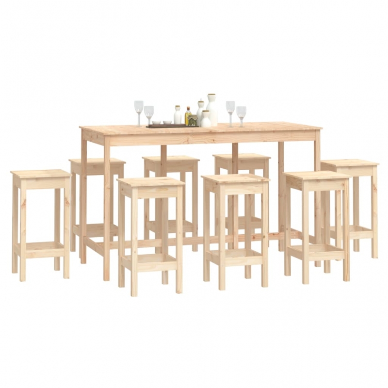Nehme einen Schluck von deinem Lieblingswein oder genieße eine leckere Mahlzeit mit deiner Familie und deinen Freunden an diesem schönen Holz-Bar-Set! Massives Kiefernholz: Dieses Bar-Set ist aus Kiefer-Massivholz Kiefernholz gefertigt. Massives Kiefernholz ist ein wunderschönes Naturmaterial. Kiefernholz weist eine gerade Maserung auf und die Aststellen verleihen dem Holz seine charakteristische, rustikale Optik.Stabil: Der Holzrahmen sorgt für Robustheit und Stabilität.Robuste Tischplatte: Der Stehtisch besitzt eine robuste Tischplatte, die den perfekten Platz für Getränke, Speisen und andere Dekoartikel bietet.Praktisches Design: Diese Barhocker verfügen über keine Rückenlehnen, sodass du bequem auf beiden Seiten der Hocker sitzen und sie bei Nichtgebrauch unter dem Bartisch verstauen kannst. Hinweis:Jedes Produkt wird mit einer Montageanleitung in der Verpackung für eine einfache Montage geliefert.