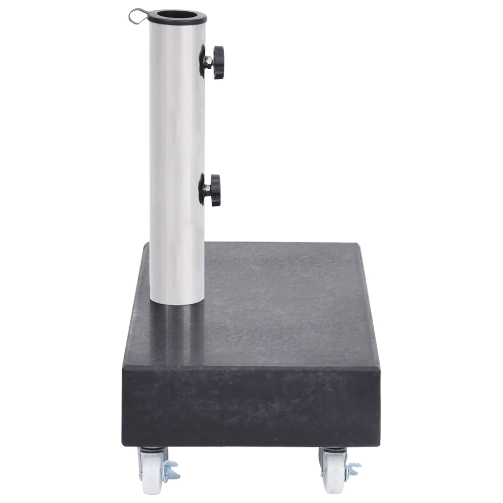 Dieser Sonnenschirmständer bietet eine feste und robuste Basis, um Ihren Sonnenschirm zu halten und gleichzeitig zu verhindern, dass er umkippt oder weggeblasen wird. Der Schirmständer hat eine robuste Granitkonstruktion, die dank ihres großen Gewichts sehr stabil steht. Granit hat außerdem ein hochwertiges Erscheinungsbild, das dem Schirmständer ein raffiniertes Aussehen und Ihrem Outdoor-Wohnbereich einen Hauch von Eleganz verleiht. Das Rohr besteht aus Edelstahl. Zusätzlich erleichtern die Räder die Umstellung des Sonnenschirmständers. Die mitgelieferten 2 Adapter passen zu Sonnenschirmstangen mit einem Durchmesser von 38 mm oder 48 mm. Die Befestigung des Sonnenschirms an dem Fuß ist ein Kinderspiel und Ihr Sonnenschirm steht fortan kerzengerade.