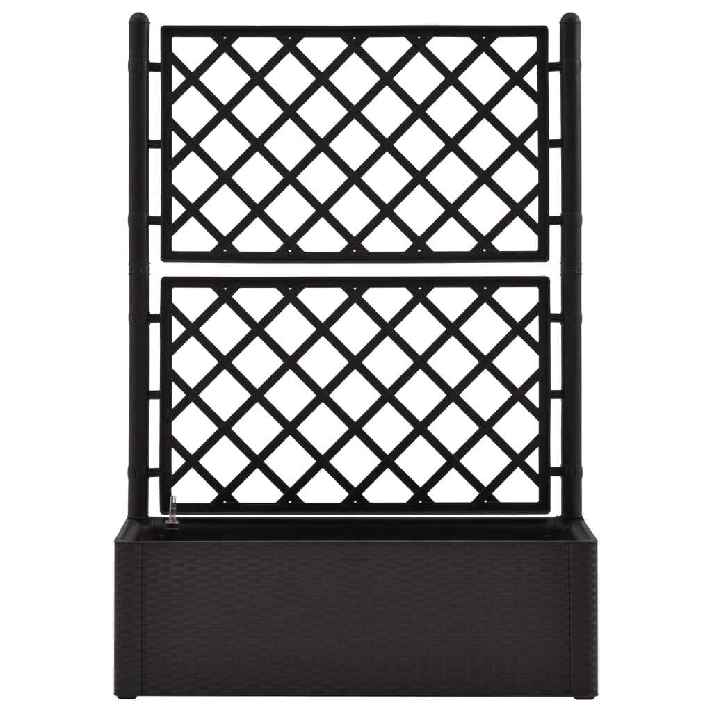 Schaffen Sie einen schönen Hingucker mit diesem eleganten, funktionalen und einzigartigen selbstbewässernden Hochbeet! Dieser Spalier-Pflanzkübel hat einen großen Blumenkasten, der eine große Anzahl grüner Pflanzen und Blumen aufnehmen kann. Das eingebaute Spalier bietet eine hervorragende Stütze für Kletterpflanzen wie Kräuter, Tomaten, Bohnen usw. Es besteht aus robustem UV-, wetter- und frostbeständigem Kunststoff und ist für den Innen- und Außenbereich geeignet. Das Design ähnelt einer täuschend realen Rattanstruktur. Das Material ist waschbar und leicht zu reinigen. Darüber hinaus kann diese Box Pflanzen automatisch gießen, indem sie Feuchtigkeit aus ihrem 90-l-Wasserreservoir ableitet, und verfügt über Wasserüberlauflöcher, um ein Überwässern zu verhindern. Die Füllstandsanzeige ist enthalten.