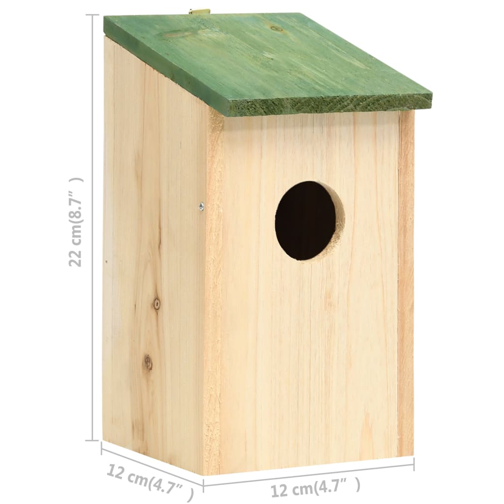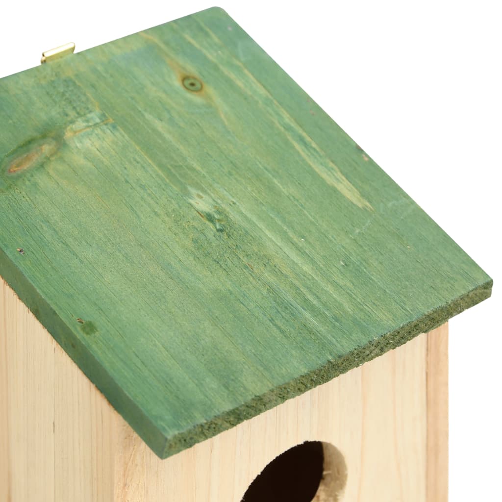 Dieses Set aus 10 schönen Holz-Vogelhäusern aus strapazierfähigem Holz ist für glückliche gefiederte Familien konzipiert! Es wird Ihren Garten erheitern und Obdach Ihren gefiederten Freunden geben. Mit einem grünen Dach und holzfarbigem Wohnbau, wird es sowohl eine perfekte Verzierung als auch ein Vogelnest sein. Ausgestattet mit einem Metallbügel an der oberen Seite, kann es im Garten aufgehängt werden.
