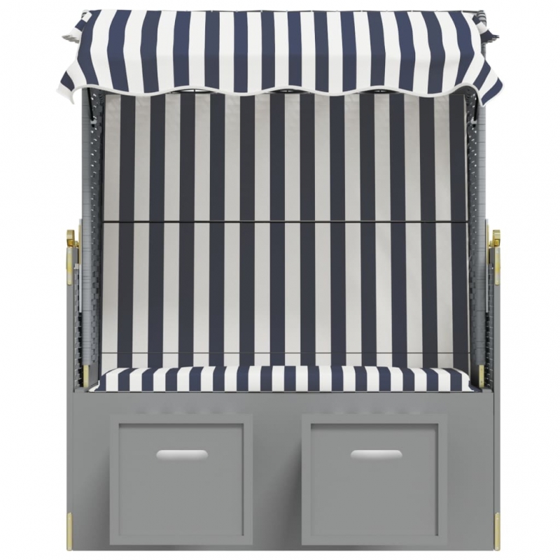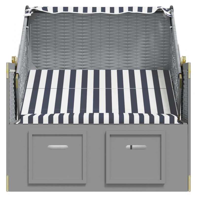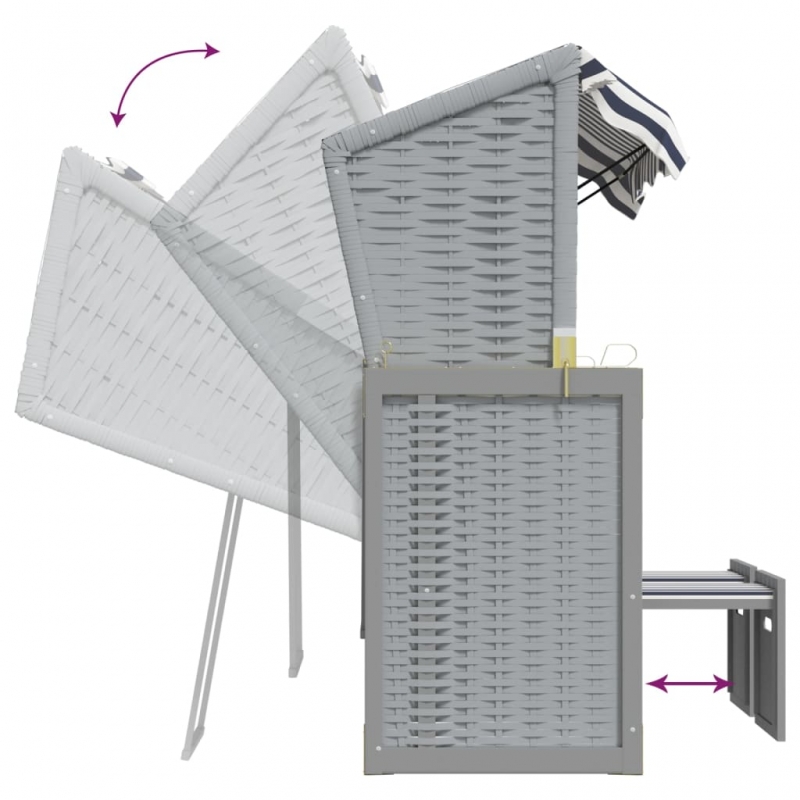 Dieser komfortable Strandkorb bietet einen großen und angenehmen Platz zum Entspannen am Strand, am Fluss oder im Garten. Erstklassiges Material: Mit einem Holzrahmen und einer Klappe aus Poly Ratten versehen, ist die Terrassenliege robust, strapazierfähig und lässt sich mit einem feuchten Tuch einfach reinigen.Praktische Funktionen: Die Strandliege ist mit einem Dach zum Schutz vor der Sonne versehen und lässt sich dank Seitenwände selbst an windigen Tagen verwenden.Ausziehbares Design: Dank der ausziehbaren Hocker sorgt die Sonnenliege für höchsten Komfort.Verstellbare Rückenlehne: Die Rückenlehne des Strandstuhls lässt sich in 3 Positionen verstellen, sodass Sie stets die bequemste Position zum Entspannen finden werden. Hinweis:Um die Lebensdauer deiner Gartenmöbel zu verlängern, empfehlen wir dir, sie mit einer wasserdichten Hülle zu schützen.