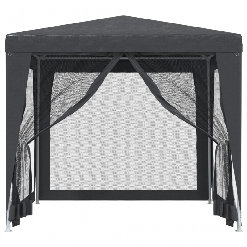 Mit seinem robusten Eisenrahmen, dem wasserfesten Dach und den vier Mesh-Seitenwänden bietet dieses tolle Partyzelt den idealen Schutz vor der Sonne. Erstklassiges Material: Dieser Pavillon besteht aus Polyethylen hoher Dichte (HDPE), das dich vor direkter Sonneneinstrahlung schützt und eine ausreichende Belüftung ermöglicht. Das HDPE wurde speziell behandelt, sodass es auch wasserfest ist.Eisenrahmen: Der Eisenrahmen sorgt für Robustheit und Stabilität.Praktisches Design: Das Partyzelt ist mit vier Mesh-Seitenwänden versehen, um Schutz vor lästigen Insekten zu bieten. Eine Seitenwand ist mit Reißverschluss versehen, um einen einfachen Zugang zu ermöglichen.Breite Anwendung: Dieses Partyzelt ist eine ideale Wahl für eine Vielzahl von Veranstaltungen im Freien wie Shows, Hochzeiten, Partys, Grillpartys, Festivals usw. Hinweis:Dieses Produkt sollte NIEMALS bei schlechtem Wetter wie starkem Wind, starkem Regen, Schnee, Sturm usw. verwendet werden.Jedes Produkt wird mit einer Montageanleitung in der Verpackung für eine einfache Montage geliefert.