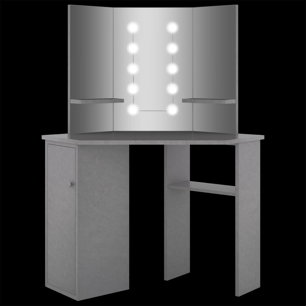 Mit diesem eleganten Frisiertisch erledigst du deine Morgenroutine mit Stil! Dieser Schminktisch aus hochwertigem MDF zeichnet sich durch eienn schlanken und modernen Stil aus. Er ist so konzipiert, dass er gut in eine Ecke passt und dennoch viel Stauraum auf kleinem Raum bietet! Ein großes Fach und eine Ablage unter dem Tisch bieten Platz für alles, was du nötig hast. Da der Schminktisch seitlich ausgerichtet ist, kannst du leicht auf deine Sachen zugreifen, wenn du am Tisch sitzt. Zusätzlich bietet ein schöner 3-Panel-Spiegel eine 3-Seiten-Ansicht für das Auftragen von Make-up. An den beiden Seiten sind untere Ablagen für Tassen, Pinsel, Kosmetika, Cremes und Lotionen, Parfüm und Dekorationsartikel angebracht. Die eleganten LED-Lampen beleuchten deine Schönheit. Hinweis:Das Produkt hat einen USB-Anschluss, aber die zertifizierte 5-V-USB-Stromquelle ist nicht im Lieferumfang enthalten.