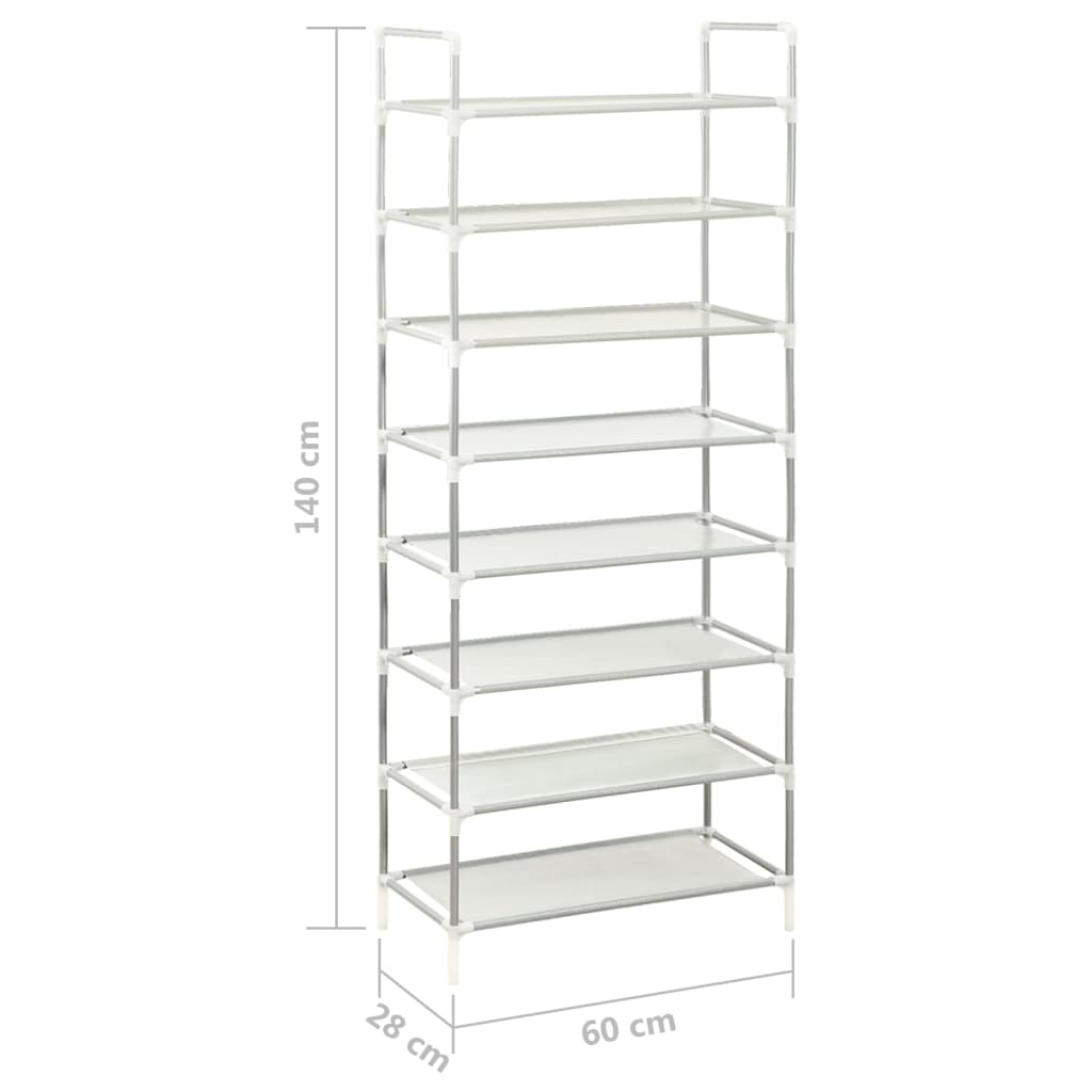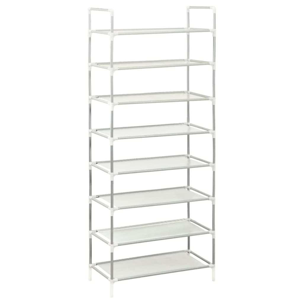 Dieses minimalistische Schuhregal bietet eine ideale Aufbewahrungslösung für deine Schuhe. Dank des Rohrrahmens aus Metall ist das Schuhregal leicht und dennoch robust. Es lässt sich auch einfach transportieren und ist ziemlich stabil. Es verfügt über acht großzügige Ablagen aus Vliesstoff und bietet reichlich Platz, um deine Schuhe in Ordnung und aus dem Weg zu halten.