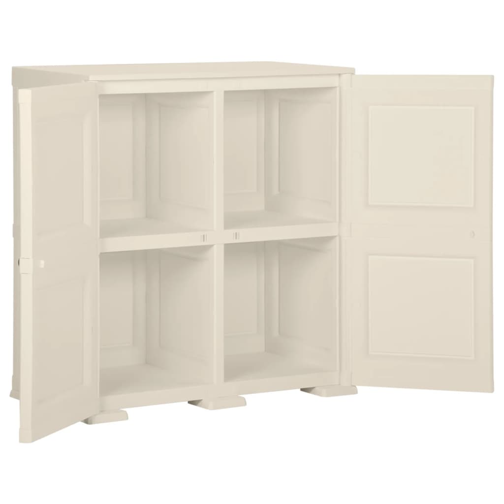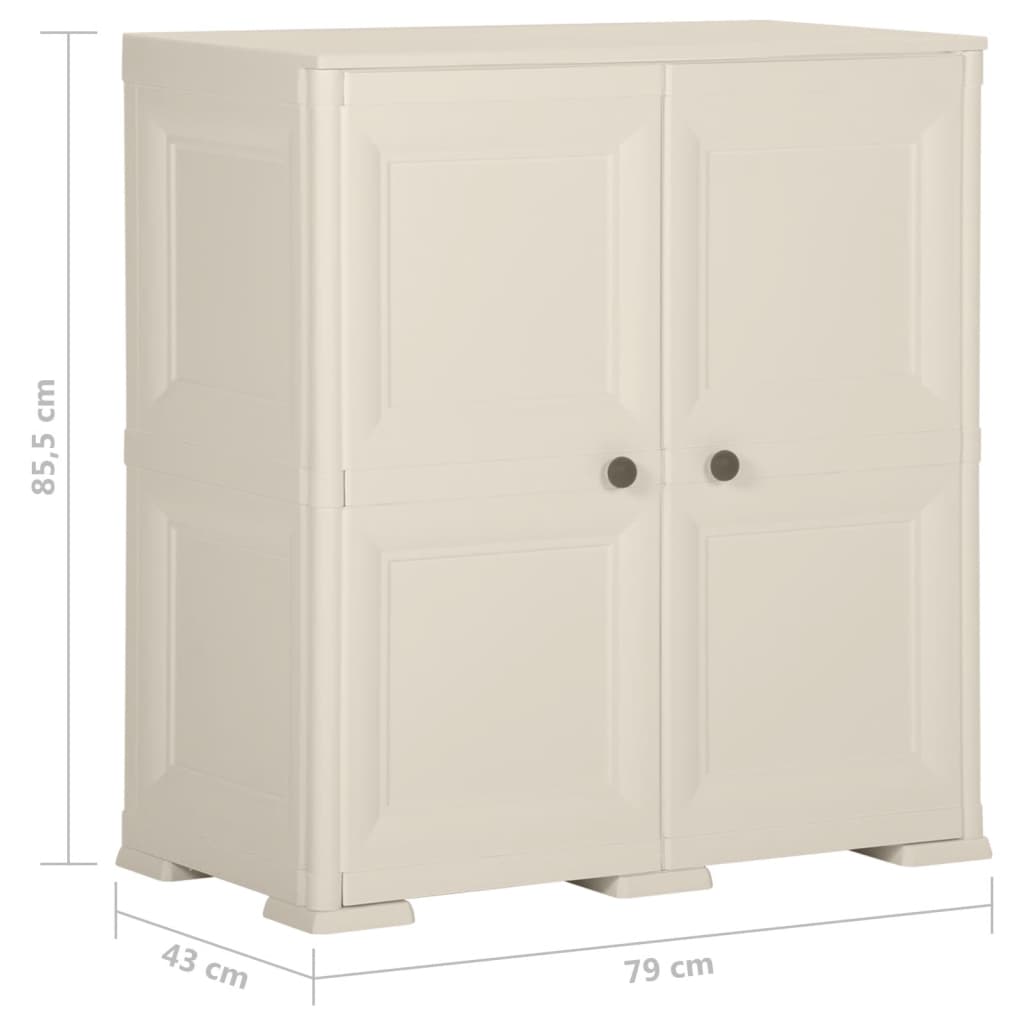 Mit diesem Schrank sorgen Sie für Ordnung in Ihrem Zuhause. Er ist eine ideale Wahl für den Einsatz zu Hause, im Büro und im Lagerraum. Dieser Aufbewahrungsschrank ist aus Kunststoff gefertigt und daher leicht zu reinigen. Der Schrank bietet reichlich Stauraum, um Ihre wichtigsten Gegenstände ordentlich und griffbereit aufzubewahren. Der Schrank weist ein kompaktes Design auf und nutzt daher begrenzten Platz optimal aus.