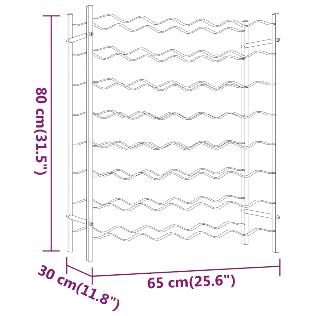 In diesem praktischen Weinregal lassen sich Ihre Lieblingsweine ordentlich aufbewahren. Reichlich Stauraum: Das Weinregal besitzt 8 Ebenen, auf denen bis zu 48 Flaschen Wein Platz finden. Jede Ebene kann 6 Flaschen aufnehmen.Modernes Design: Dieses Weinregal ist auch eine trendige Ergänzung zur Aufbewahrung von Wein in modernen Küchen, Speisekammern und Bars.Hohe Qualität: Das Flaschenregal besteht aus Metall, sodass es nicht rostet und sich nicht verformt. Darüber hinaus verhindert seine äußerst glatte Oberflächen Kratzer auf den Flaschen. ACHTUNG:Um ein Umkippen zu verhindern, muss dieses Produkt mit der mitgelieferten Wandhalterung gesichert werden.