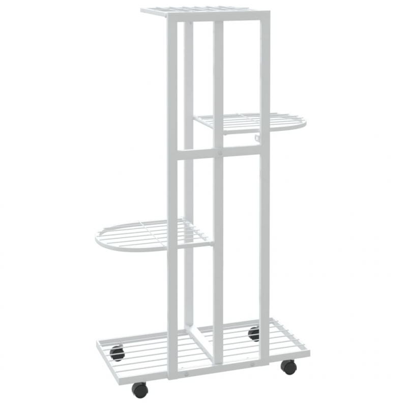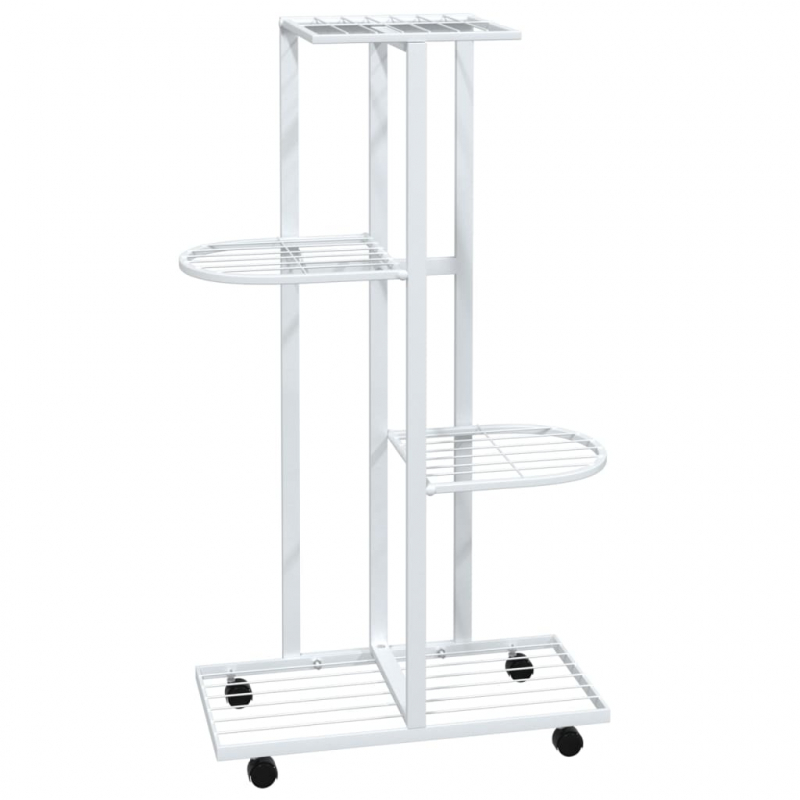 Blumenständer 4-Etagen mit Rollen 44x23x80 cm Weiß Eisen