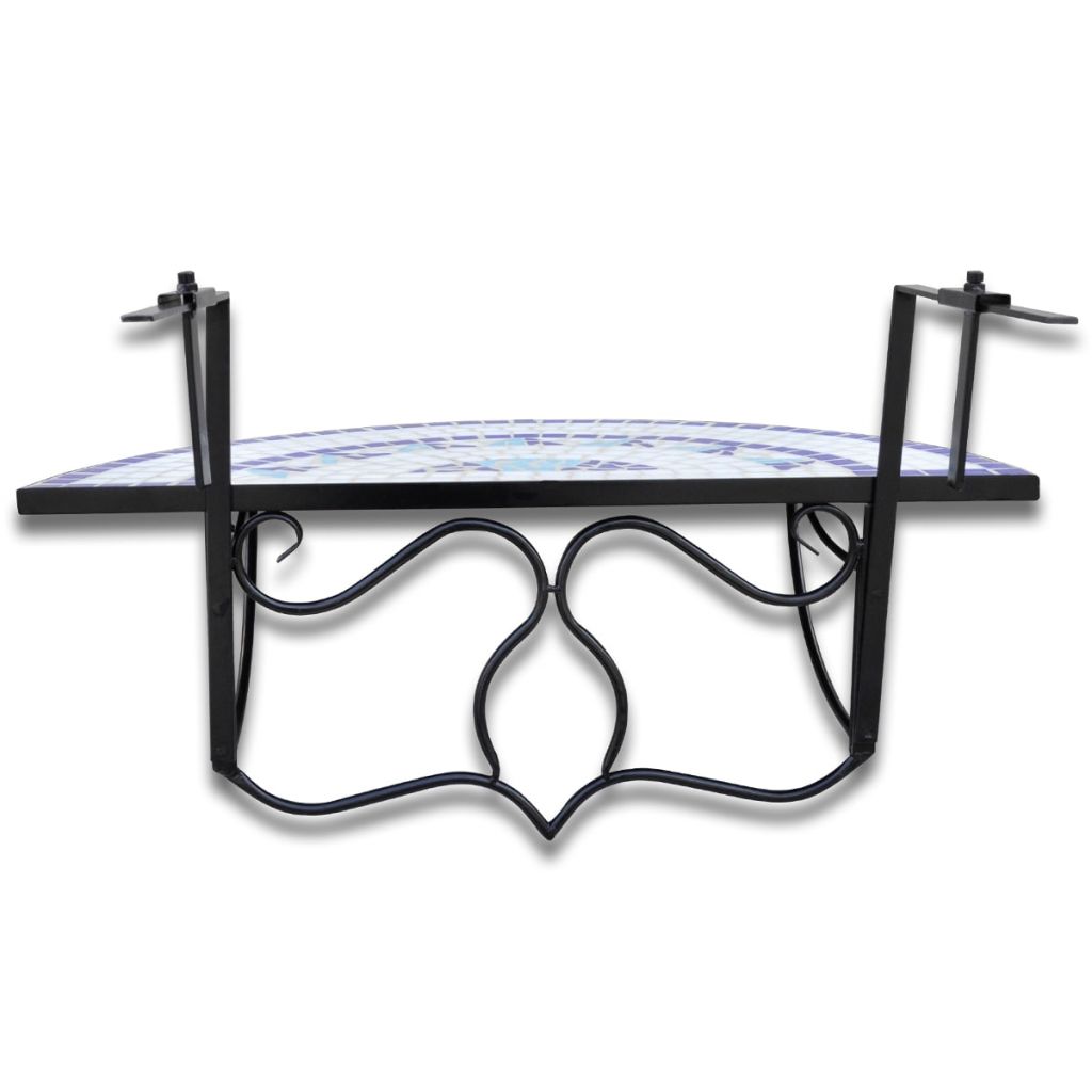 Mit seinem halbrunden Design ist dieser Balkontisch besonders stilvoll und praktisch. Der Hängetisch ist sicherlich eine großartige Bereicherung für Ihren Balkon. Auf diesem niedlichen Kaffeetisch können Sie Ihre Getränke und Snacks bequem in Reichweite abstellen. Die Halterung aus Eisen trägt zur Robustheit bei, während die halbrunde Tischplatte mit Keramik-Mosaik leicht zu reinigen ist. Dieser Balkontisch kann an jeder Terrassen- oder Balkongeländer (max. Dicke 18 cm) befestigt werden. Es kann bei Nichtgebrauch einfach zusammengeklappt werden, um mehr Platz zu sparen! Achtung: Dieses Produkt soll nicht draußen in der Kälte gelassen zu werden. Hole dir diesen Mosaik-Balkontisch nach Hause und werte deinen Balkon auf!