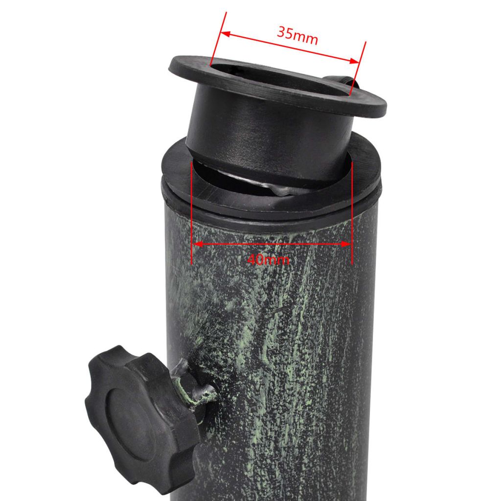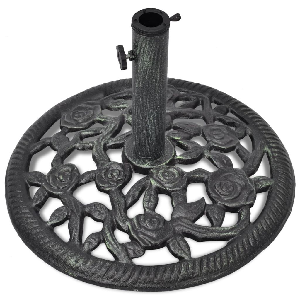 Dieser solide Schirmhalter dient als feste und stabile Basis für Ihren Schirm und hält ihn an seinem Platz. Das langlebige Gusseisenmaterial sorgt für eine ausgezeichnete Stabilität. Der mitgelieferte Adapter ist für Schirmstangen mit einem Durchmesser von 35, 38 oder 48 mm geeignet. Die detaillierte Schnörkelarbeit und das charmante Blumenmuster setzen einen stilvollen Akzent in jedem Garten oder Außenbereich.