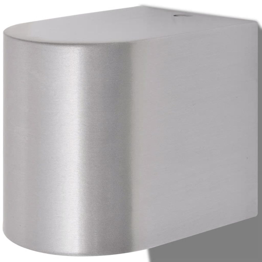 Dieses elegante LED-Wandleuchten-Set verfügt über ein modernes Design. Aus Aluminium gefertigt, jedoch in einer Edelstahloptik, werden diese Wandleuchten jeden Platz im Freien verschönern. Sie verfügen über einen integrierten Klarglas-Diffusor. Dank den eingebauten LEDs strahlt dieses stilvolle Wandleuchten-Set ein angenehmes, warmweißes Licht aus, das nach unten abgestrahlt wird. Dank ihrer IP44-Schutzart ist diese Wandlampe witterungsbeständig und langlebig; deshalb eignet sie sich hervorragend für den Außenbereich. Die Lieferung umfasst 2 Wandleuchten.
