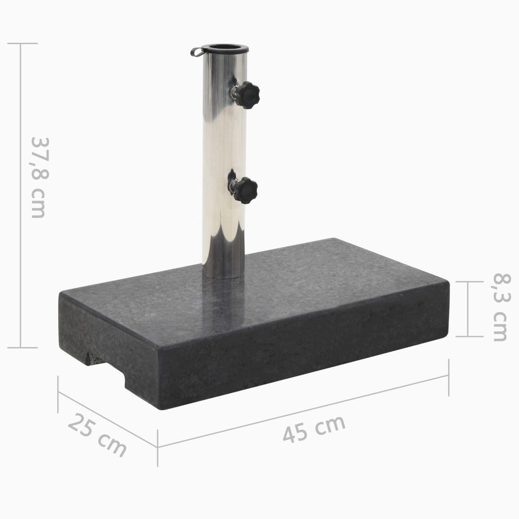 Der solide Sonnenschirmständer aus Granit bietet einen festen und stabilen Stand für deinen Sonnenschirm und verhindert, dass er umkippt oder weggeweht wird. Aus hartem Granit gefertigt und mit einem Gewicht von 25 kg, ist dieser Schirmständer sehr stabil und sorgt an windigen Tagen dafür, dass der Sonnenschirm an seinem Platz bleibt. Der Sonnenschirmständer verfügt über 2 Verriegelungsbolzen, die den Schirmmast fest halten. Ein Adapter ist im Lieferumfang auch enthalten, sodass der Sonnenschirmständer auch Masten mit einem Durchmesser von 38/48 mm aufnehmen kann.