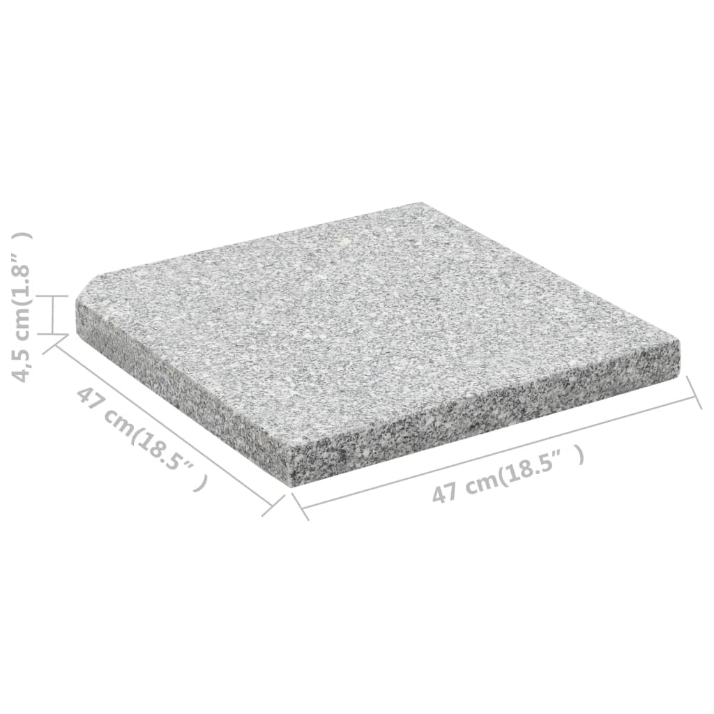 Diese solide Sonnenschirm-Basis bietet eine festen und robusten Stand für Ihren Sonnenschirm und bewahrt ihn so vor Umkippen oder starkem Wind. Aus hartem Granit gefertigt und mit einem Gewicht von 25 kg, ist dieser Ständer sehr stabil und sorgt an windigen Tagen dafür, dass Ihr Sonnenschirm ganz still steht. Bitte beachten Sie, dass dieser Teil nur 1/4 einer vollständigen Gewichtsplatte darstellt. Wir empfehlen Ihnen, 4 Teile zu kaufen, um ein vollständiges Set zu erhalten.