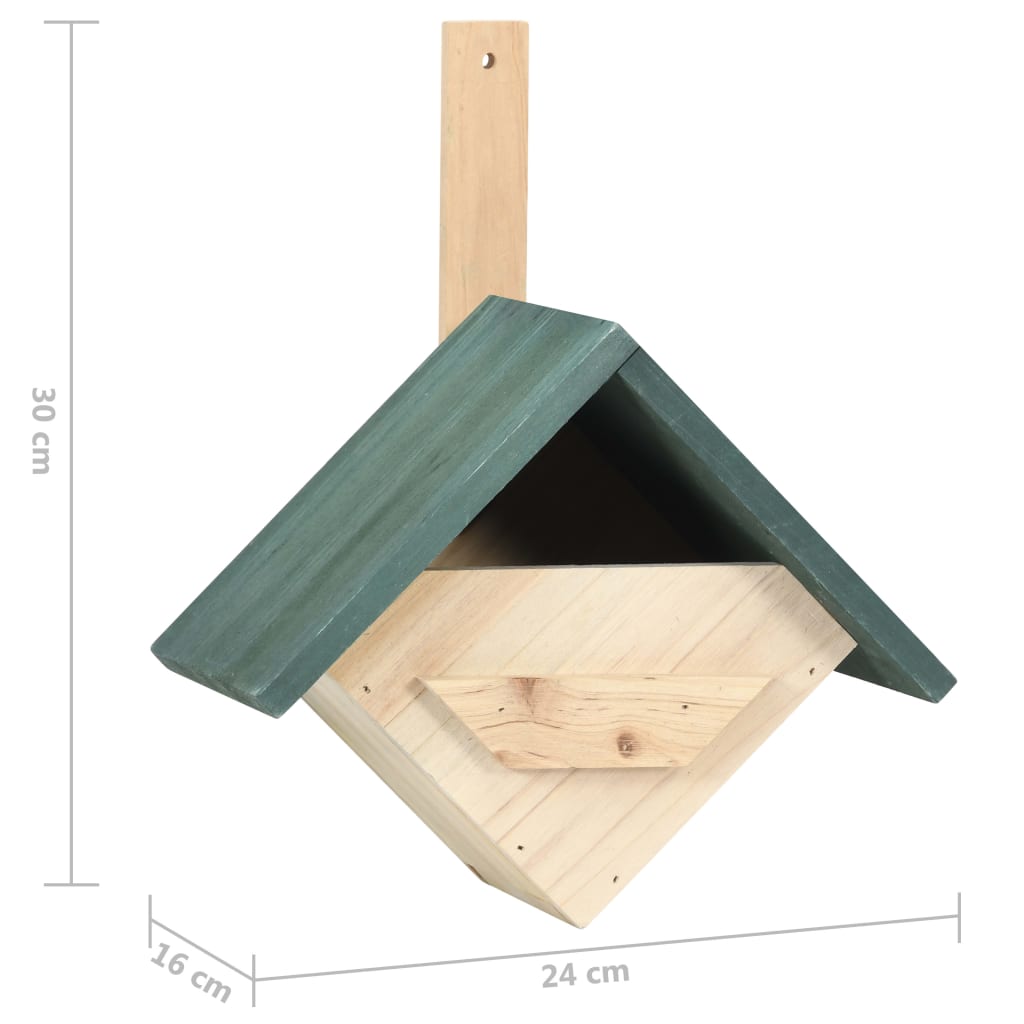 Die Holz-Vogelhäuser bieten Ihren gefiederten Freunden Schutz in Ihrem Garten oder auf Ihrer Terrasse. Es bietet auch eine robuste Nisthöhle, um kleine Vögel vor Raubtieren zu schützen. Dieser Vogel-Nistkasten ist aus massivem Tannenholz handgefertigt, wodurch er langlebig und für den Außenbereich geeignet ist. Dieser Vogelkäfig verfügt über ein grünes Dach und ein rautenförmiges Naturholzgehäuse. Es ist auch eine perfekte Verzierung für Ihren Außenbereich. An den vorgebohrten Löchern kann die Holzvoliere problemlos in Ihrem Garten aufgehängt werden. Beobachten Sie, wie gut es die Vögel in Ihrem eigenen Garten haben!