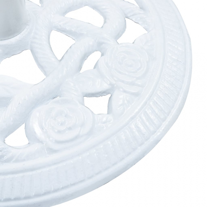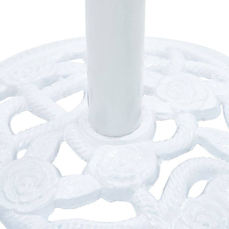 Dieser solide Schirmhalter dient als feste und stabile Basis für Ihren Schirm und hält ihn an seinem Platz. Das langlebige Gusseisenmaterial sorgt für eine ausgezeichnete Stabilität. Der mitgelieferte Adapter ist für Schirmstangen mit einem Durchmesser von 35, 38 oder 48 mm geeignet. Die detaillierte Schnörkelarbeit und das charmante Blumenmuster setzen einen stilvollen Akzent in jedem Garten oder Außenbereich.