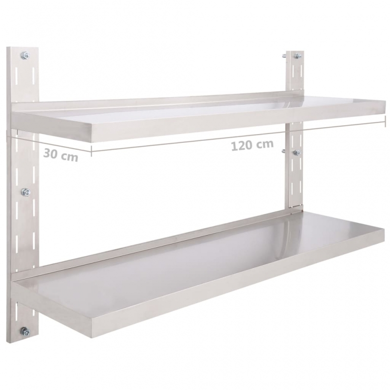 Dieses 2-stufige Wandregal aus Edelstahl ist nicht nur stilvoll, sondern auch sehr funktional. Es ist eine gute Wahl für alle, die zusätzlichen Stauraum in der Küche benötigen. Es dient als idealer Aufbewahrungsort für Teller, Geschirr und verschiedene andere Küchenutensilien. Das Küchenwandregal aus Edelstahl ist äußerst langlebig, stabil und pflegeleicht und eignet sich daher perfekt für Bereiche, in denen ein hoher Hygienestandard erforderlich ist. Das Regal verfügt über eine Gesamttragfähigkeit von 40 kg. Montagezubehör ist im Lieferumfang enthalten und das Wandregal lässt sich damit ganz einfach montieren.