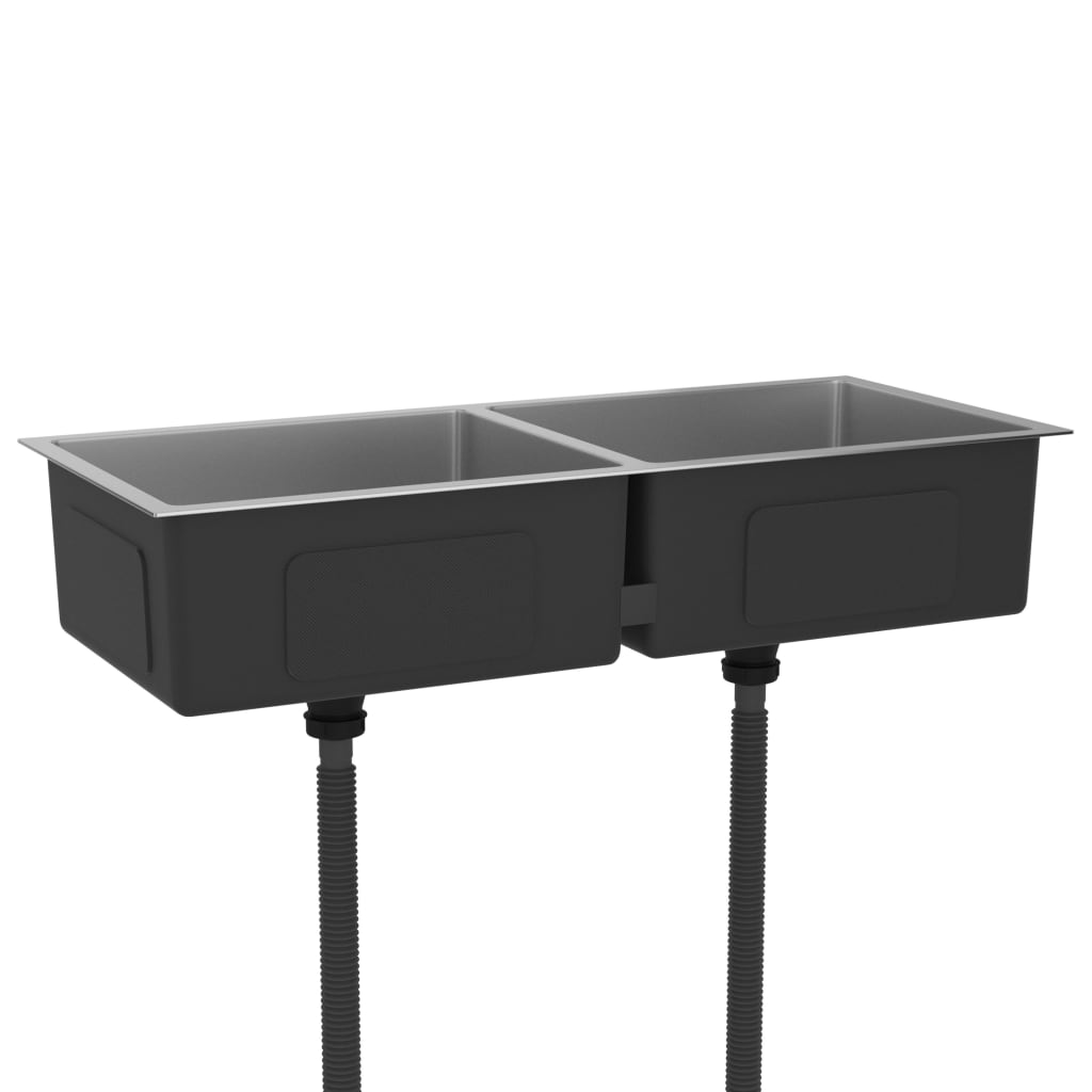 Genießen Sie die Vorteile dieser erstklassigen Einbauspüle mit schlichtem, zeitgenössischem Design. Die zwei Becken mit seidig glattem Satin-Finish überzeugen durch ihre Eleganz und Raffinesse und passen zu jeder Kücheneinrichtung! Dieses Spülbecken vereint das Beste aus Funktion und Design und besteht aus hochwertigem, handgefertigtem Edelstahl, der gegen Kondensation behandelt wurde. Es ist daher schimmelresistent, bleifrei und korrosionsbeständig. Dank der Pads zur Schalldämmung ist es auch schallisoliert. Darüber hinaus ermöglicht das Becken mit einzigartigem Wasserabfluss in X-Form einen schnellen Wasserfluss und verhindert so, das Wasser im Becken verbleibt. Das Spülbecken kann je nach Ihrem Belieben als Unterbau, Unterputz und Einbau montiert werden.