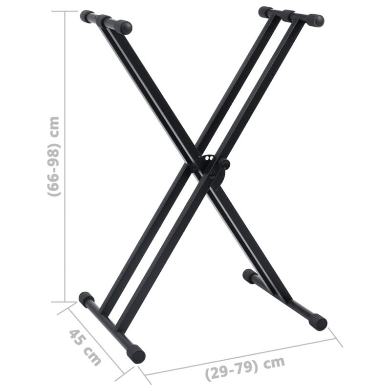 Dieser verstellbare Keyboardständer und Hocker ist der ideale Begleiter für Ihre Keyboard-Performance und -Übungen. Der Keyboardständer besteht aus robustem Stahl und ist daher sehr langlebig und stabil. Der gepolsterte, quadratische Hocker bietet Ihnen ultimativen Komfort beim Spielen. Mit mehreren einstellbaren Arbeitshöhen können sowohl der Ständer als auch der Hocker leicht auf die gewünschte Höhe für Spieler unterschiedlicher Statur eingestellt werden. Dank der klappbaren Funktion sind Ständer und Hocker für eine einfache Mobilität und bessere Aufbewahrung auf Reisen ausgelegt. Die Lieferung umfasst einen Ständer und einen Hocker.